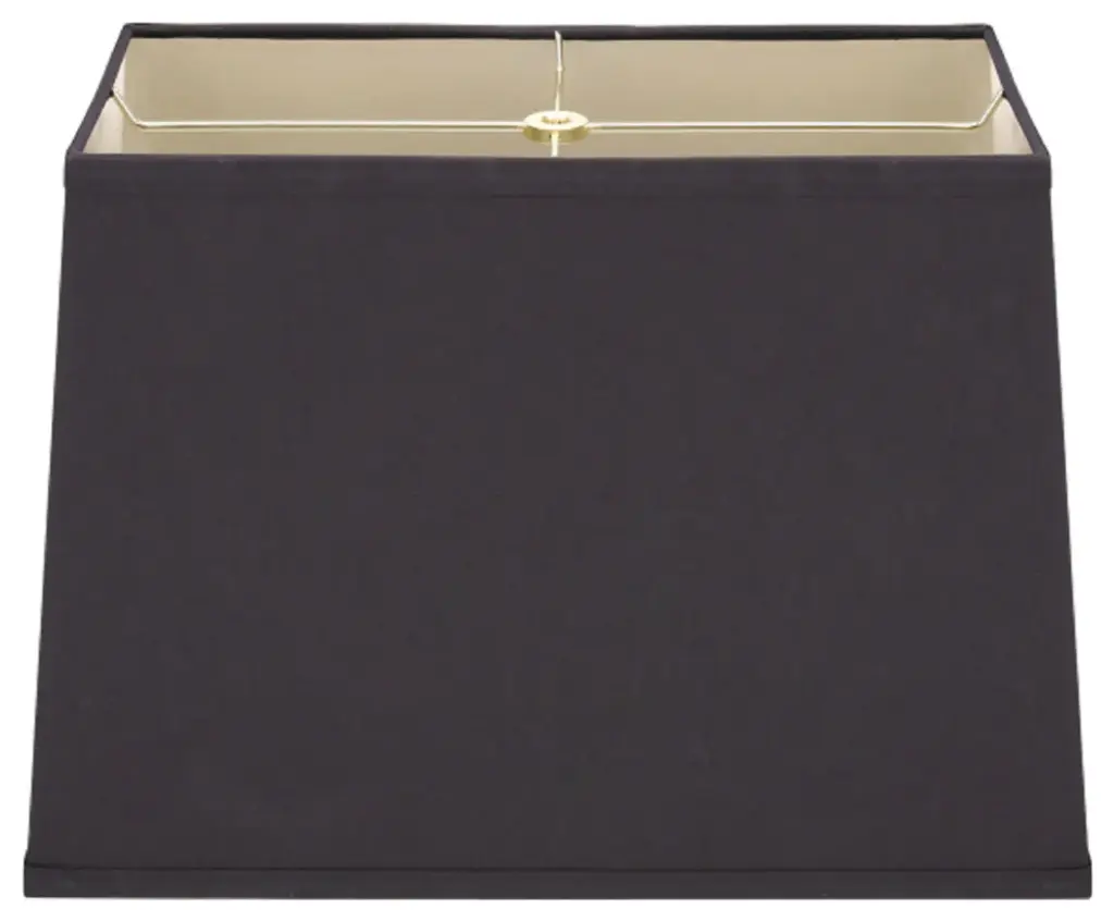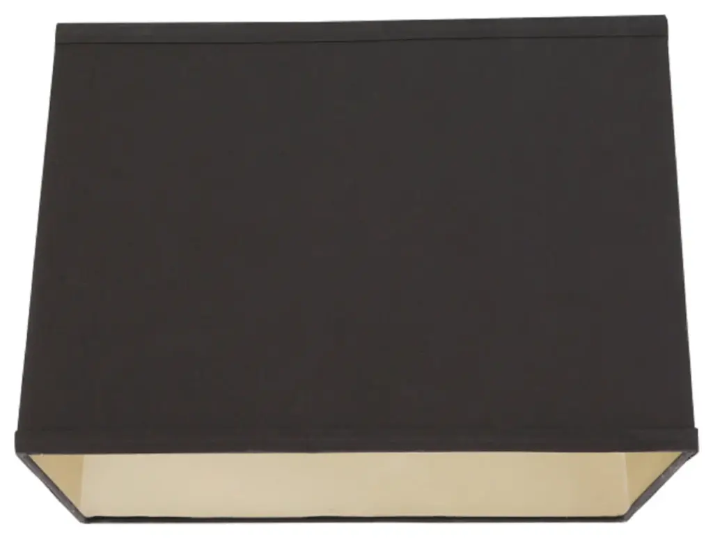 Aspen Creative is dedicated to offering a wide assortment of attractive and well-priced portable lamps, kitchen pendants, vanity wall fixtures, outdoor lighting fixtures, lamp shades, and lamp accessories. We have in-house designers that follow current trends and develop cool new products to meet those trends. Product Detail• 1 pack transitional square hardback replacement lamp shade• tetoron cotton fabric in black with gold inside | 13" + 13" top x 14" + 14" bottom x 9 1/2" slant height• Spider construction designed to attach to lamp harp • Our hardback shades use Virgin Styrene backing board to produce a warm, natural & smooth light more appealing than shades made with recycled Styrene board that can crack & yellow over time• Applications - For table lamps, accent lamps, vintage lamps, candle stick lamps and kid''s room lamps