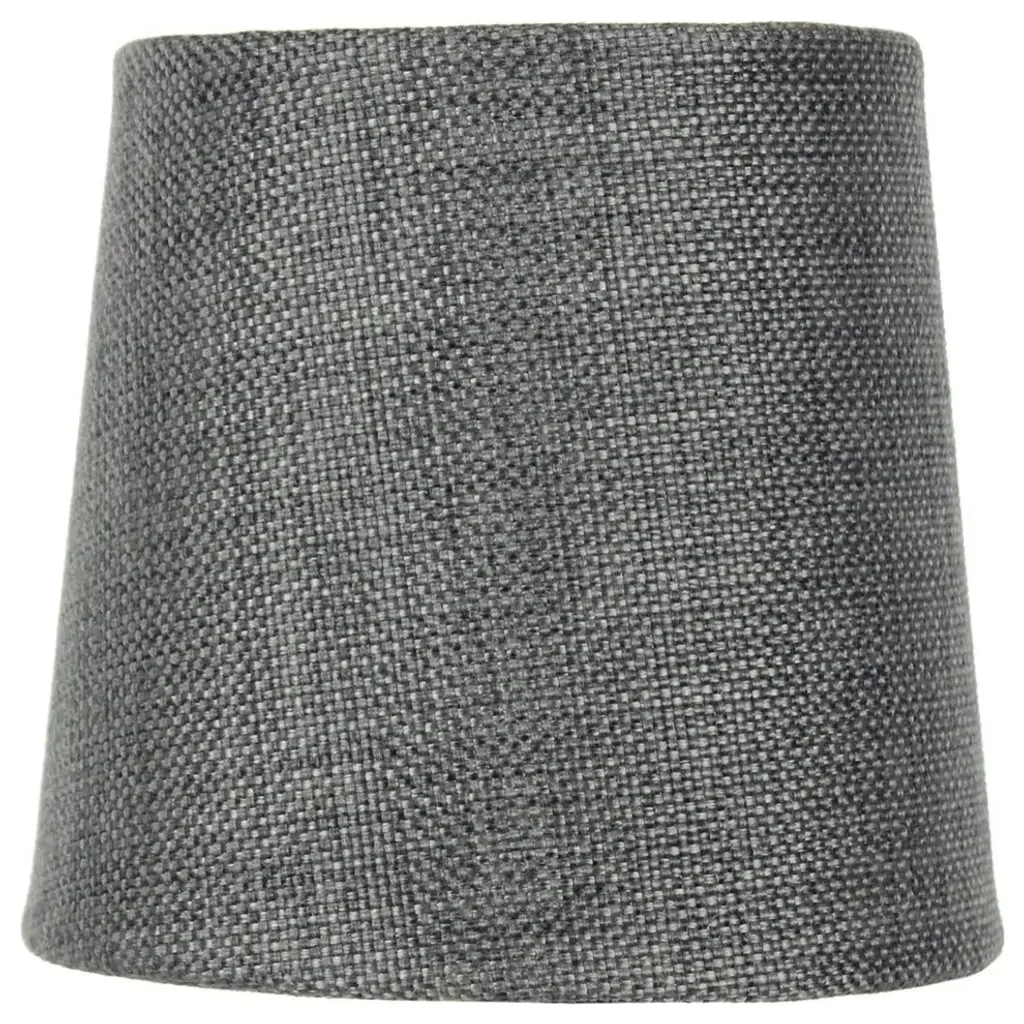 Home Concept Signature Shades feature the finest premium hardback parchment. Durable parchment means your new lampshade will last for years. It wont get brittle from smoke or sunlight like less expensive shades. Heavy brass and steel frames means your shades can withstand abuse from kids and pets. It''s a difference you can feel when you lift it. Granite Gray Burlap fabric is a blend of black, gray and brown (if you look close enough you can pick out all 3 distinct colors) From a distance it looks dark (granite) gray Grey Fabric Liner; Includes Double Candle Clip with 1/2 drop, design to sit atop of your lamp Top shelf hardback lampshade, found in better lighting showrooms. Durable Hotel quality shade. 4.5 Top x 5.5 Bottom x 5.25 Slant Height Height is measured on the slant in a straight line, it is not the vertical height