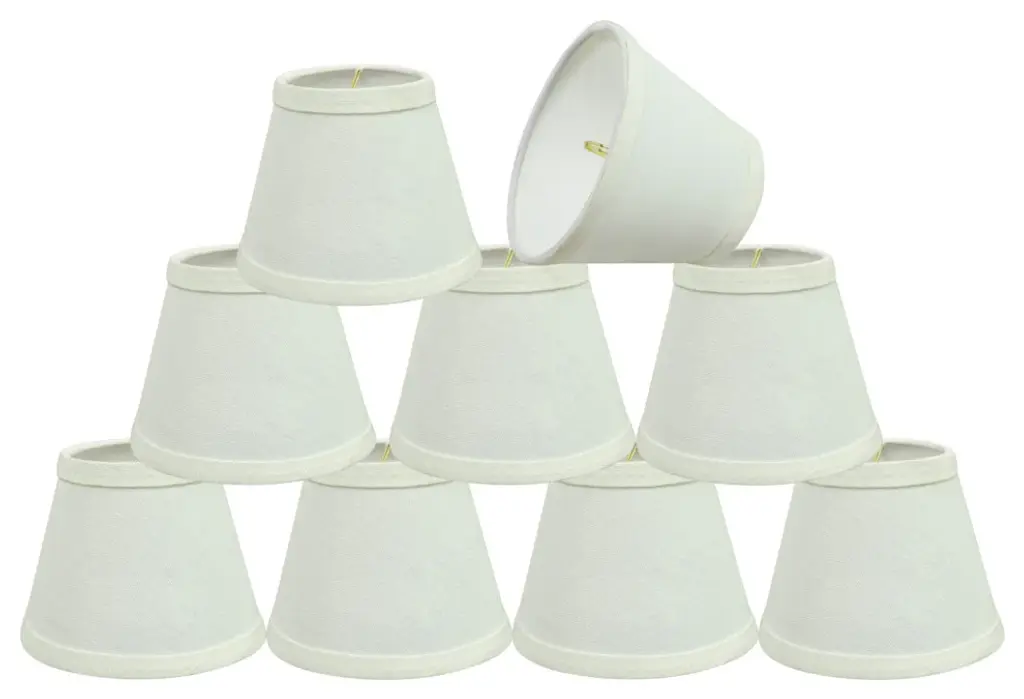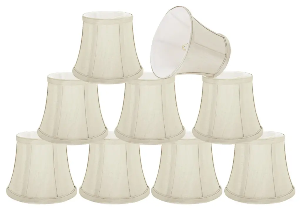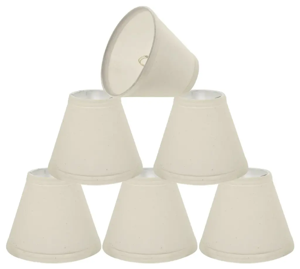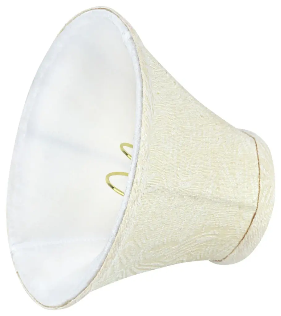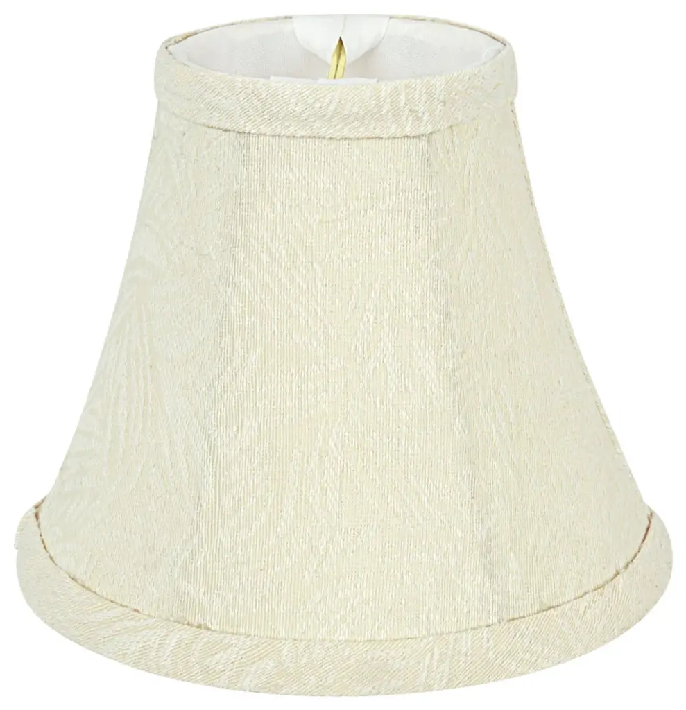 Aspen Creative is dedicated to offering a wide assortment of attractive and well-priced portable lamps, kitchen pendants, vanity wall fixtures, outdoor lighting fixtures, lamp shades, and lamp accessories. We have in-house designers that follow current trends and develop cool new products to meet those trends.Product Detail:• Bell Shape Transitional (Mini Chandelier Lamp Shades) in Beige• Bell (clip on) Replacement Shade - Jacquard Fabric• Clip-on style fitter designed for bare Torpedo chandelier bulbs (bend tip bulbs not recommended) either in candelabra base (E12) or medium base (E26), light bulbs not included• Clip On Lamp Shade Dimensions: 3" top x 6" bottom x 5" slant height