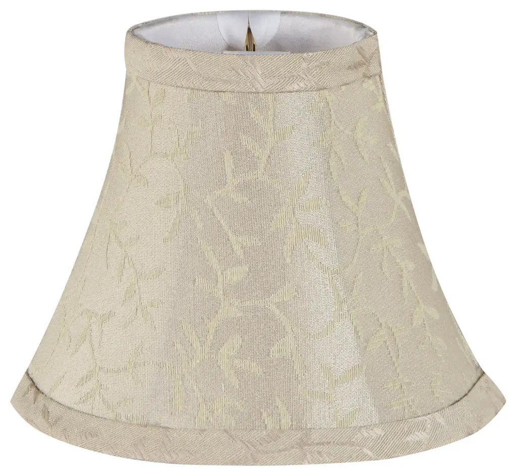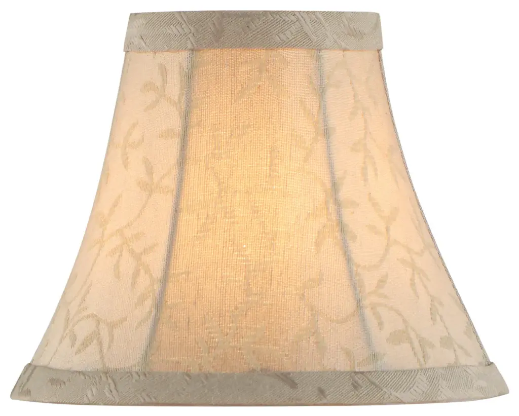 Aspen Creative is dedicated to offering a wide assortment of attractive and well-priced portable lamps, kitchen pendants, vanity wall fixtures, outdoor lighting fixtures, lamp shades, and lamp accessories. We have in-house designers that follow current trends and develop cool new products to meet those trends.Product Detail:• Bell Shape Transitional (Mini Chandelier Lamp Shades) in Beige• Bell (clip on) Replacement Shade - Vine Leaf Design Fabric• Clip-on style fitter designed for bare Torpedo chandelier bulbs (bend tip bulbs not recommended) either in candelabra base (E12) or medium base (E26), light bulbs not included• Clip On Lamp Shade Dimensions: 3" top x 6" bottom x 5" slant height