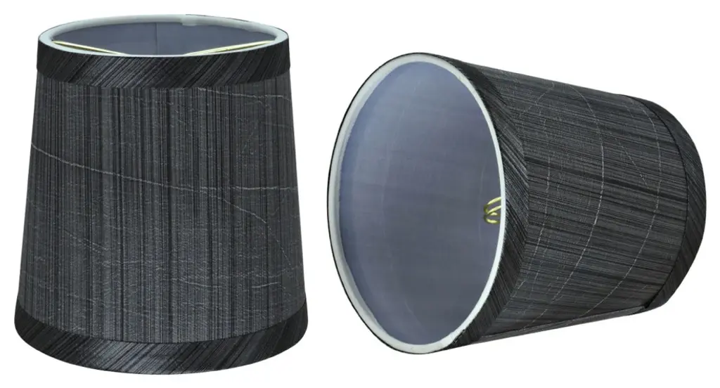 Aspen Creative is dedicated to offering a wide assortment of attractive and well-priced portable lamps, kitchen pendants, vanity wall fixtures, outdoor lighting fixtures, lamp shades, and lamp accessories. We have in-house designers that follow current trends and develop cool new products to meet those trends. Product Detail• Bell Shape Transitional (Mini Chandelier Lamp Shades) in Two-Tone Black• Bell (clip on) Replacement Shade | Two-Tone Textured Fabric• Clip-on style fitter designed for bare Torpedo chandelier bulbs (bend tip bulbs not recommended) either in candelabra base (E12) or medium base (E26), light bulbs not included• Clip On Lamp Shade Dimensions: 4" top x 5" bottom x 5" slant height