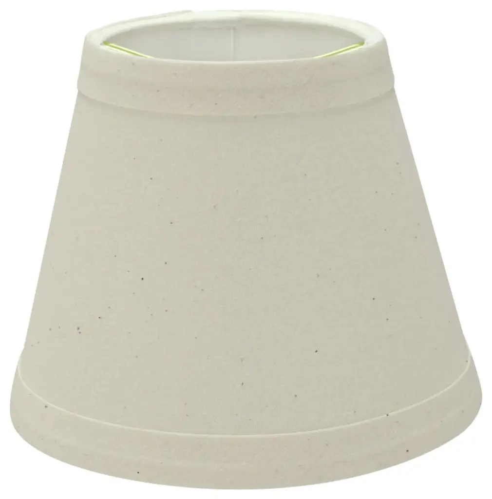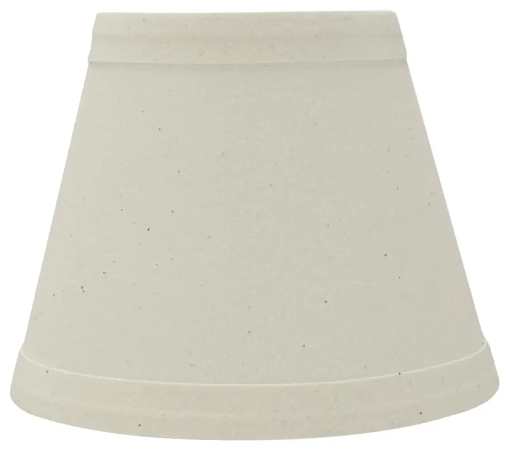 Aspen Creative is dedicated to offering a wide assortment of attractive and well-priced portable lamps, kitchen pendants, vanity wall fixtures, outdoor lighting fixtures, lamp shades, and lamp accessories. We have in-house designers that follow current trends and develop cool new products to meet those trends. Product Detail• Hardback Empire Shape Transitional (Mini Chandelier Lamp Shades) in Off White• Hardback Empire (clip on) Replacement Shade | Cotton Fabric• Clip-on style fitter designed for bare Torpedo chandelier bulbs (bend tip bulbs not recommended) either in candelabra base (E12) or medium base (E26), light bulbs not included• Clip On Lamp Shade Dimensions: 3" top x 5" bottom x 4" slant height