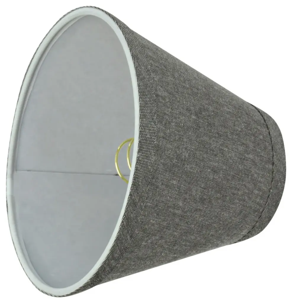 Aspen Creative is dedicated to offering a wide assortment of attractive and well-priced portable lamps, kitchen pendants, vanity wall fixtures, outdoor lighting fixtures, lamp shades, and lamp accessories. We have in-house designers that follow current trends and develop cool new products to meet those trends. Product Detail• Hardback Empire Shape Transitional (Mini Chandelier Lamp Shades) in Grey• Hardback Empire (clip on) Replacement Shade | Textured Fabric• Clip-on style fitter designed for bare Torpedo chandelier bulbs (bend tip bulbs not recommended) either in candelabra base (E12) or medium base (E26), light bulbs not included• Clip On Lamp Shade Dimensions: 3" top x 6" bottom x 5" slant height