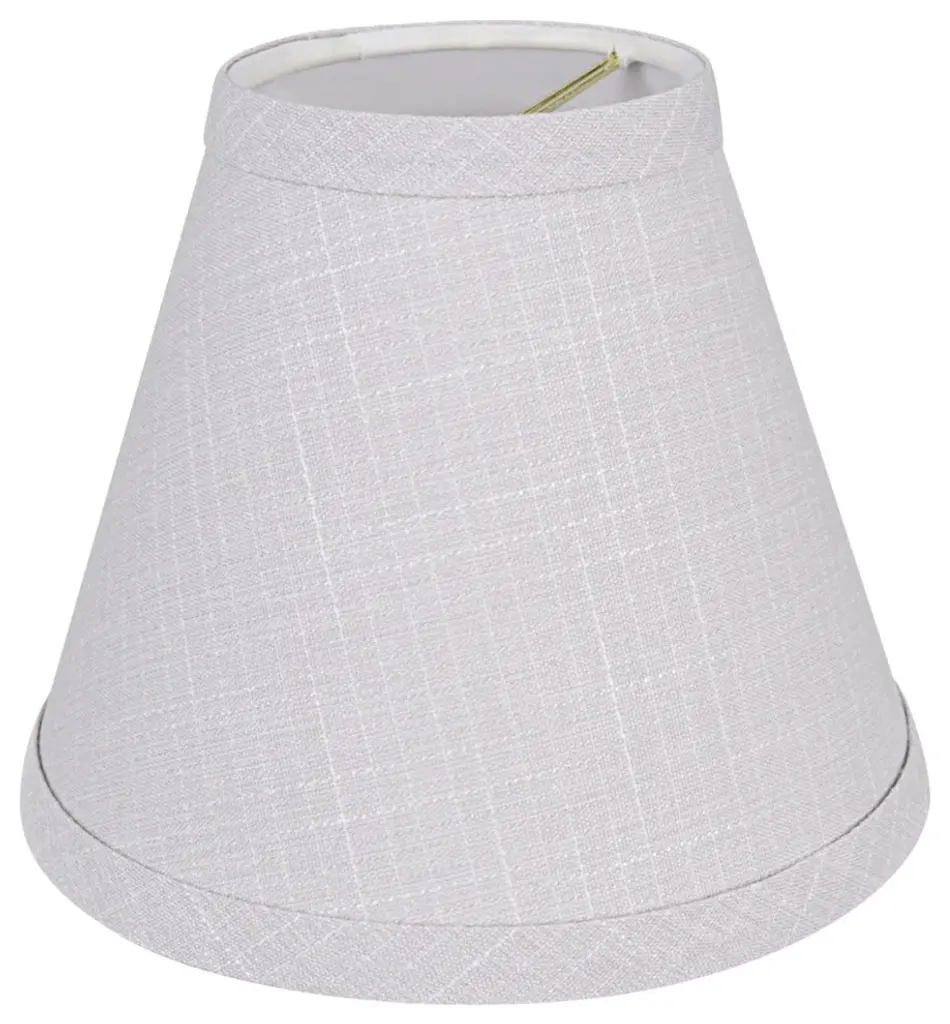 Aspen Creative is dedicated to offering a wide assortment of attractive and well-priced portable lamps, kitchen pendants, vanity wall fixtures, outdoor lighting fixtures, lamp shades, and lamp accessories. We have in-house designers that follow current trends and develop cool new products to meet those trends. Product Detail• Hardback Empire Shape Transitional (Mini Chandelier Lamp Shades) in light Gray• Hardback Empire (clip on) Replacement Shade - Linen Fabric• Clip-on style fitter designed for bare Torpedo chandelier bulbs (bend tip bulbs not recommended) either in candelabra base (E12) or medium base (E26), light bulbs not included• Clip On Lamp Shade Dimensions: 3" top x 6" bottom x 5" slant height