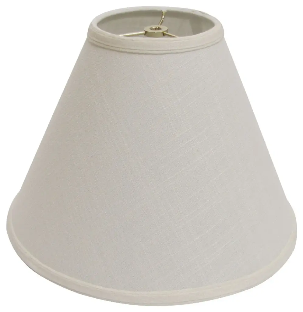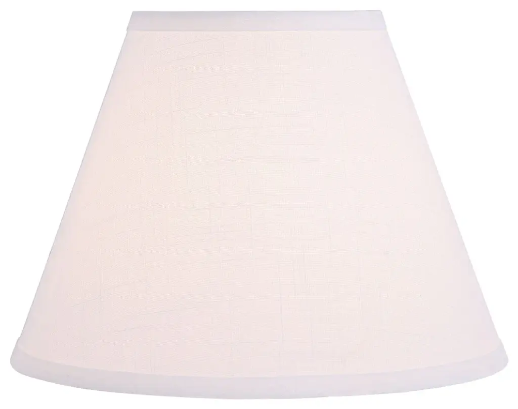 Aspen Creative is dedicated to offering a wide assortment of attractive and well-priced portable lamps, kitchen pendants, vanity wall fixtures, outdoor lighting fixtures, lamp shades, and lamp accessories. We have in-house designers that follow current trends and develop cool new products to meet those trends.Product Detail:• 1 pack transitional hardback empire replacement lamp shade• Linen fabric in off white - 6" top x 12" bottom x 9" slant height• Spider construction - designed to attach to lamp harp • Applications - For table lamps, accent lamps, vintage lamps, candle stick lamps and kid''s room lamps