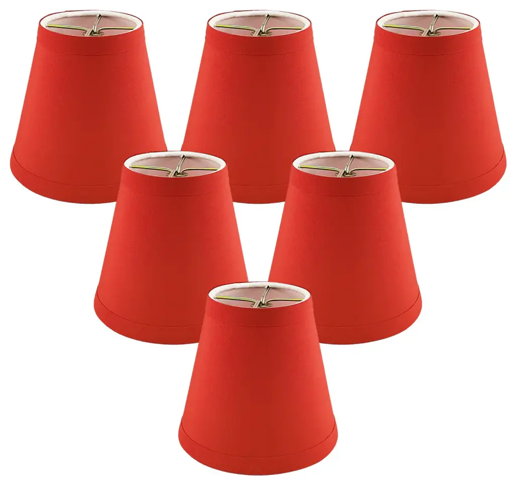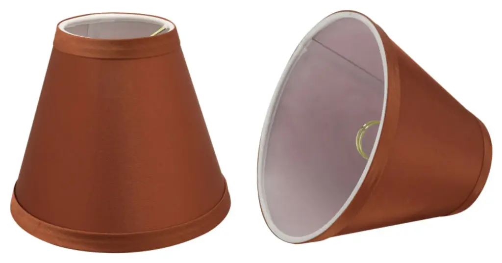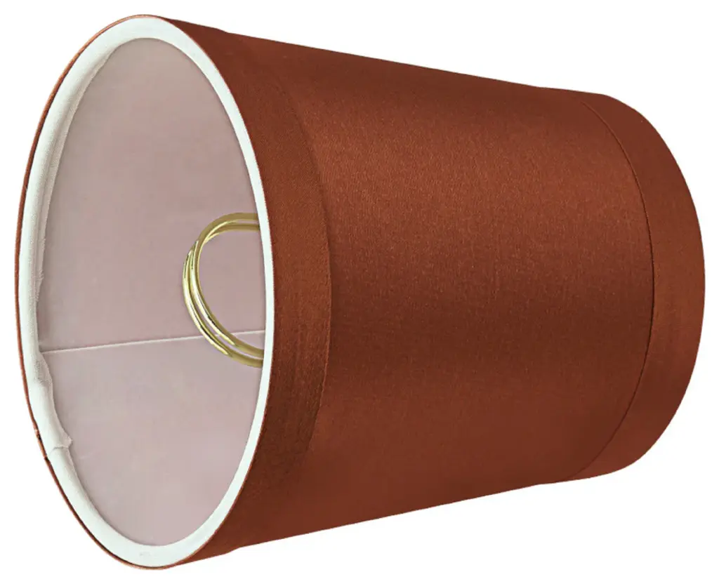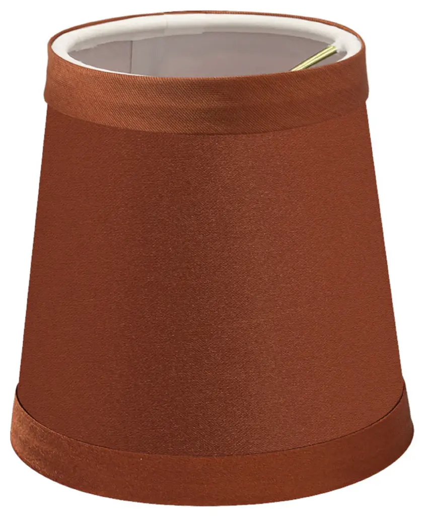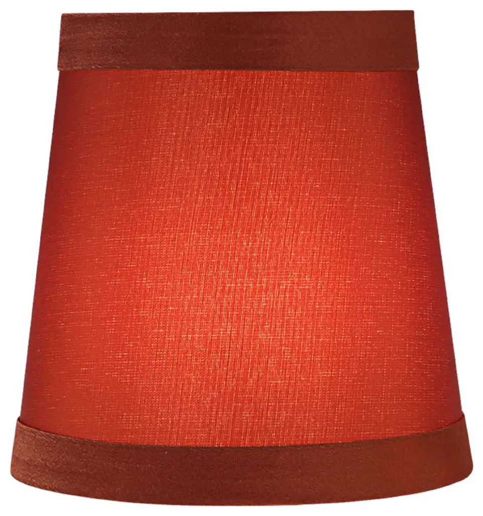 Aspen Creative is dedicated to offering a wide assortment of attractive and well-priced portable lamps, kitchen pendants, vanity wall fixtures, outdoor lighting fixtures, lamp shades, and lamp accessories. We have in-house designers that follow current trends and develop cool new products to meet those trends. Product Detail• Hardback Empire Shape Transitional (Mini Chandelier Lamp Shades) in Redwood• Hardback Empire (clip on) Replacement Shade | Sateen fabric • Clip-on style fitter designed for bare torpedo chandelier bulbs (bend tip bulbs not recommended) either in candelabra base (E12) or medium base (E26), light bulbs not included• Clip On Lamp Shade Dimensions: 3" top x 4" bottom x 4" slant height | Recommended for use with 40 watt light bulb• Our hardback shades use Virgin Styrene backing board to produce a warm, natural & smooth light � more appealing than shades made with recycled Styrene board that can crack & yellow over time.Aspen Creative Item# 32715-5