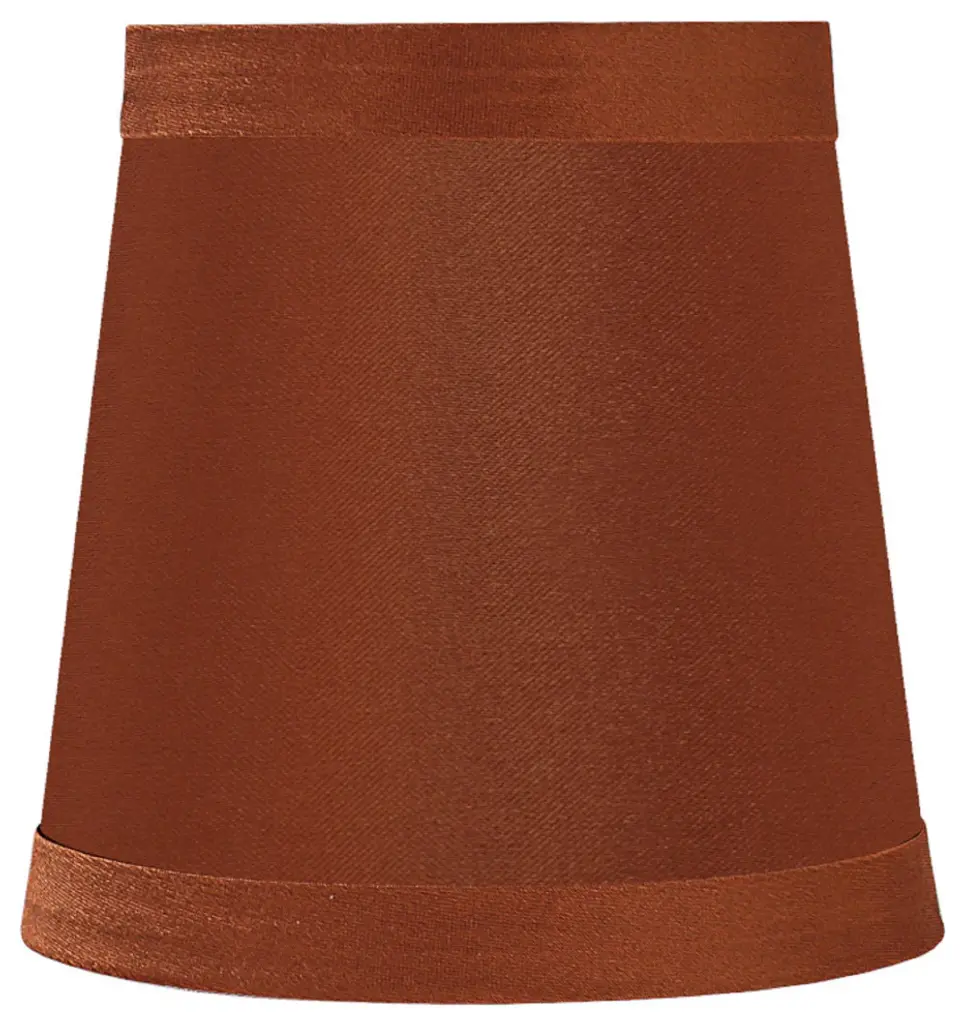 Aspen Creative is dedicated to offering a wide assortment of attractive and well-priced portable lamps, kitchen pendants, vanity wall fixtures, outdoor lighting fixtures, lamp shades, and lamp accessories. We have in-house designers that follow current trends and develop cool new products to meet those trends. Product Detail• Hardback Empire Shape Transitional (Mini Chandelier Lamp Shades) in Redwood• Hardback Empire (clip on) Replacement Shade | Sateen fabric • Clip-on style fitter designed for bare torpedo chandelier bulbs (bend tip bulbs not recommended) either in candelabra base (E12) or medium base (E26), light bulbs not included• Clip On Lamp Shade Dimensions: 3" top x 4" bottom x 4" slant height | Recommended for use with 40 watt light bulb• Our hardback shades use Virgin Styrene backing board to produce a warm, natural & smooth light � more appealing than shades made with recycled Styrene board that can crack & yellow over time.Aspen Creative Item# 32715-6