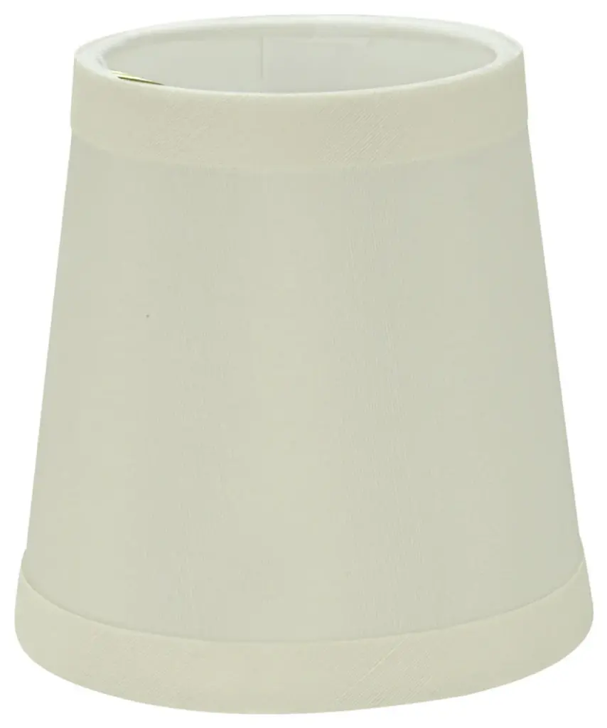 Aspen Creative is dedicated to offering a wide assortment of attractive and well-priced portable lamps, kitchen pendants, vanity wall fixtures, outdoor lighting fixtures, lamp shades, and lamp accessories. We have in-house designers that follow current trends and develop cool new products to meet those trends. Product Detail• Hardback Empire Shape Transitional (Mini Chandelier Lamp Shades) in Off White• Hardback Empire (clip on) Replacement Shade | Faux silk fabric • Clip-on style fitter designed for bare torpedo chandelier bulbs (bend tip bulbs not recommended) either in candelabra base (E12) or medium base (E26), light bulbs not included• Clip On Lamp Shade Dimensions: 3" top x 4" bottom x 4" slant height | Recommended for use with 40 watt light bulb• Our hardback shades use Virgin Styrene backing board to produce a warm, natural & smooth light � more appealing than shades made with recycled Styrene board that can crack & yellow over time.Aspen Creative Item# 32717-6