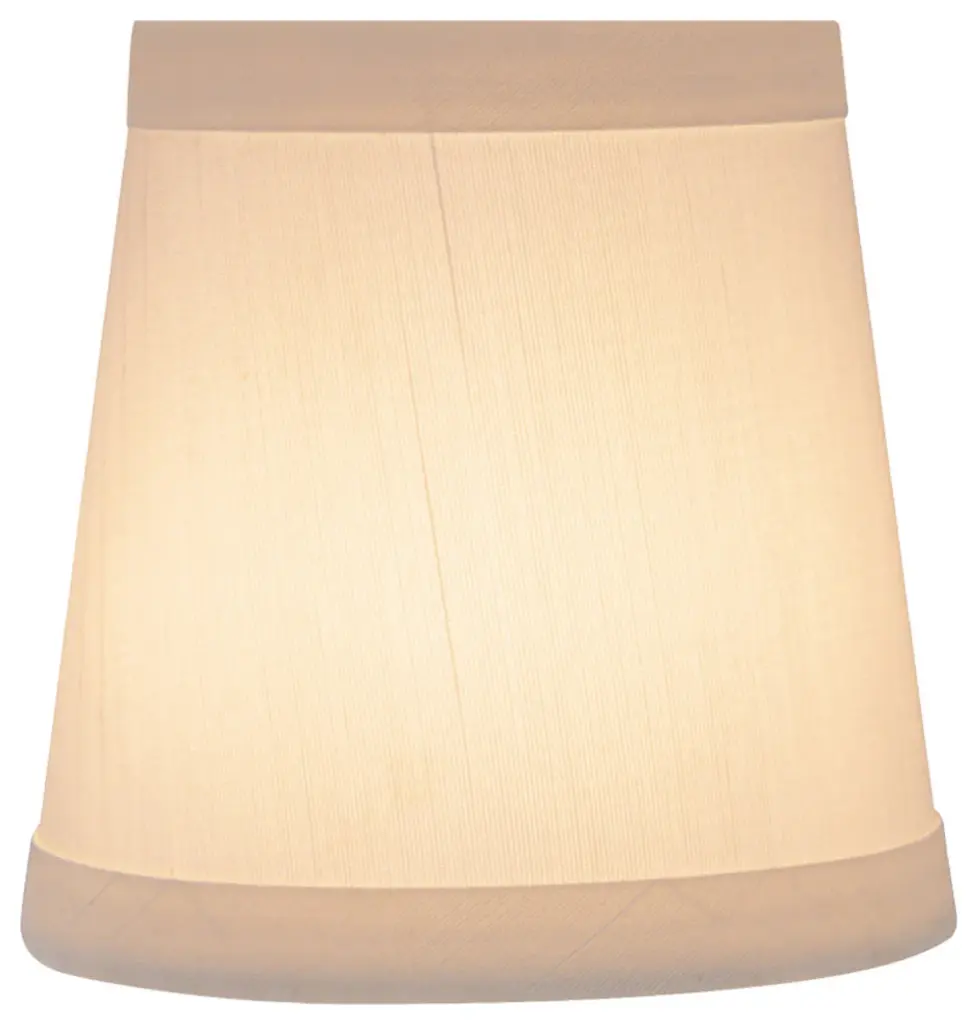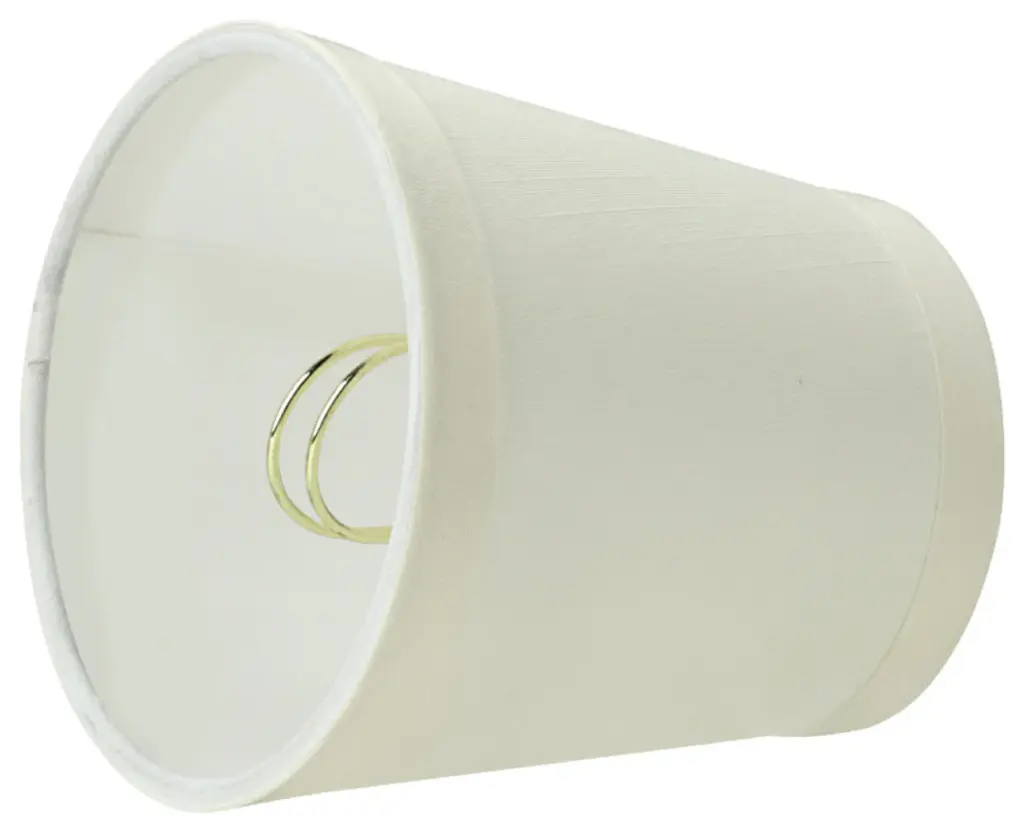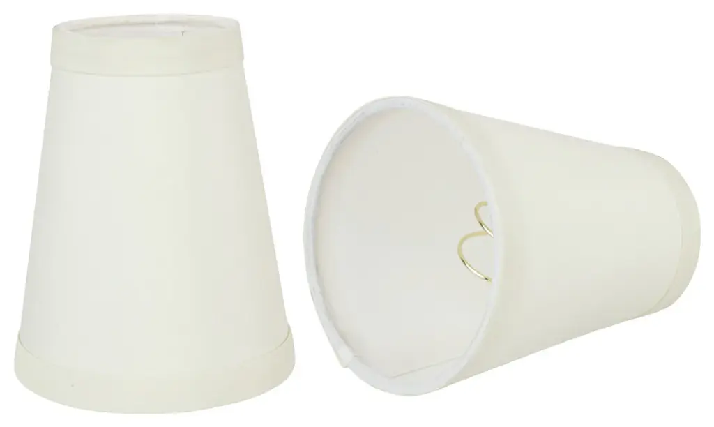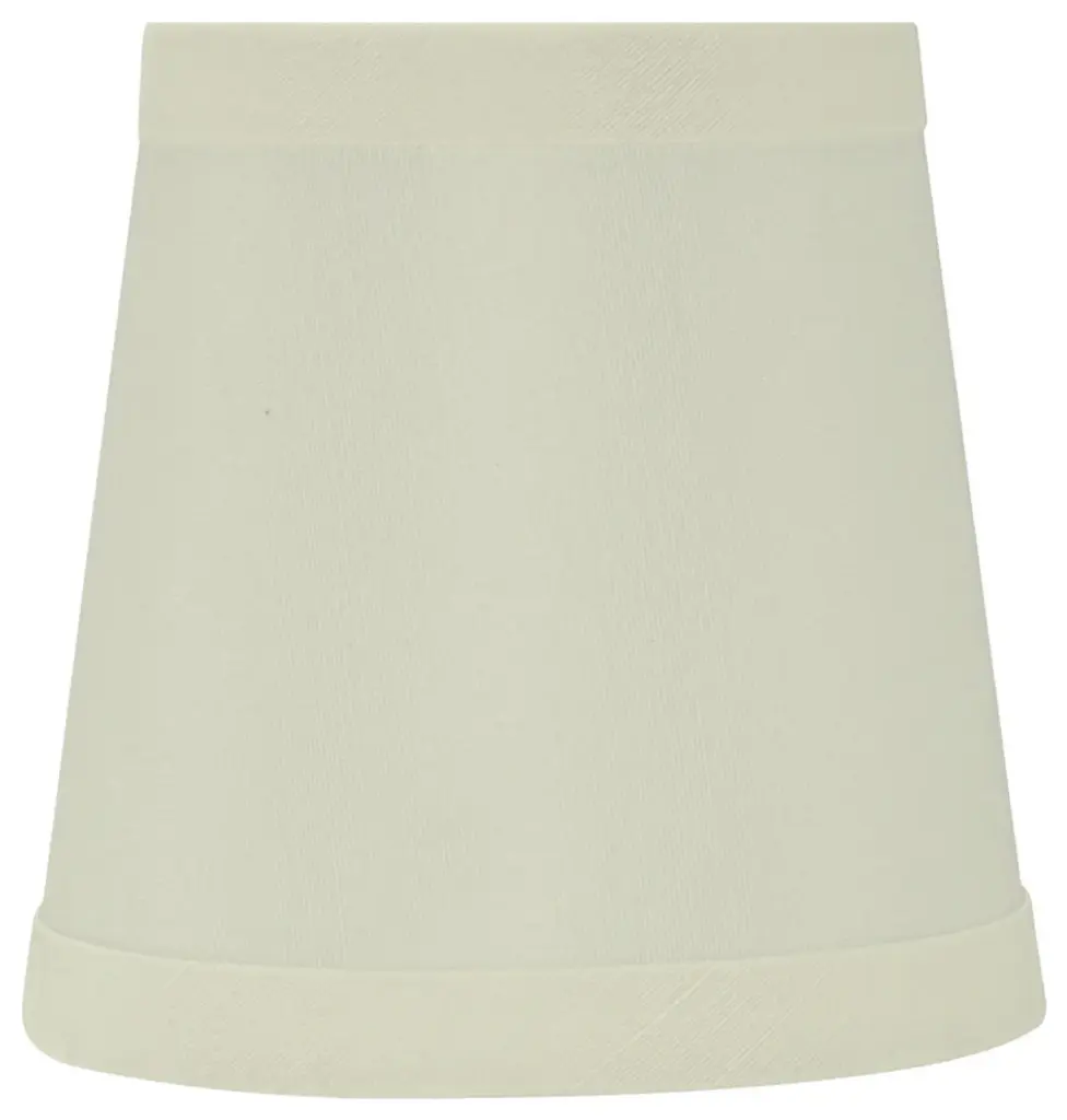 Aspen Creative is dedicated to offering a wide assortment of attractive and well-priced portable lamps, kitchen pendants, vanity wall fixtures, outdoor lighting fixtures, lamp shades, and lamp accessories. We have in-house designers that follow current trends and develop cool new products to meet those trends. Product Detail• Hardback Empire Shape Transitional (Mini Chandelier Lamp Shades) in Off White• Hardback Empire (clip on) Replacement Shade | Faux silk fabric • Clip-on style fitter designed for bare torpedo chandelier bulbs (bend tip bulbs not recommended) either in candelabra base (E12) or medium base (E26), light bulbs not included• Clip On Lamp Shade Dimensions: 3" top x 4" bottom x 4" slant height | Recommended for use with 40 watt light bulb• Our hardback shades use Virgin Styrene backing board to produce a warm, natural & smooth light � more appealing than shades made with recycled Styrene board that can crack & yellow over time.Aspen Creative Item# 32717-2