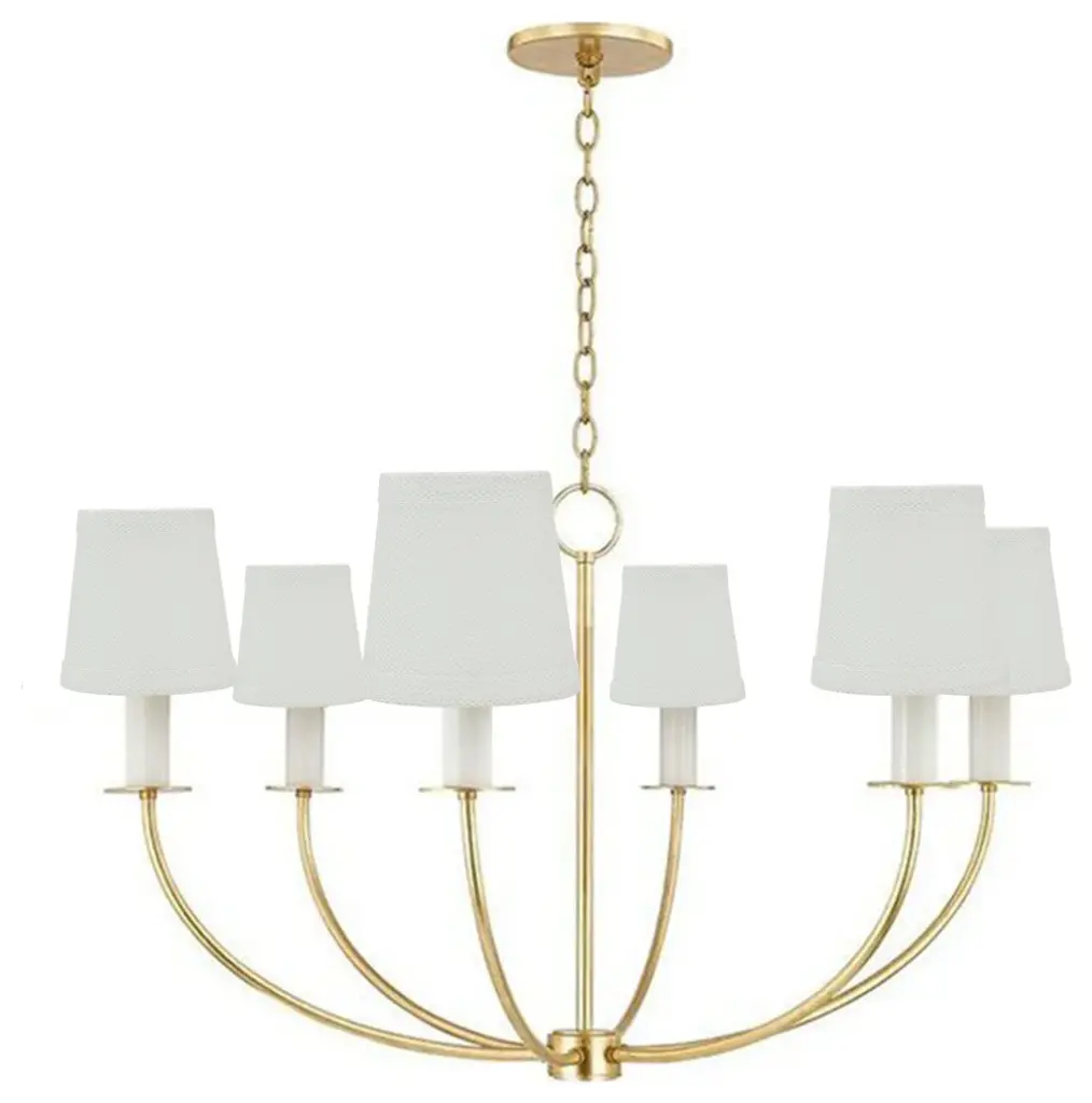Aspen Creative is dedicated to offering a wide assortment of attractive and well-priced portable lamps, kitchen pendants, vanity wall fixtures, outdoor lighting fixtures, lamp shades, and lamp accessories. We have in-house designers that follow current trends and develop cool new products to meet those trends. Product Detail• Hardback Empire Shape Transitional (Mini Chandelier Lamp Shades) in White• Hardback Empire (clip on) Replacement Shade | Network fabric • Clip-on style fitter designed for bare torpedo chandelier bulbs (bend tip bulbs not recommended) either in candelabra base (E12) or medium base (E26), light bulbs not included• Clip On Lamp Shade Dimensions: 3" top x 4" bottom x 4" slant height | Recommended for use with 40 watt light bulb• Our hardback shades use Virgin Styrene backing board to produce a warm, natural & smooth light � more appealing than shades made with recycled Styrene board that can crack & yellow over time.Aspen Creative Item# 32718-6