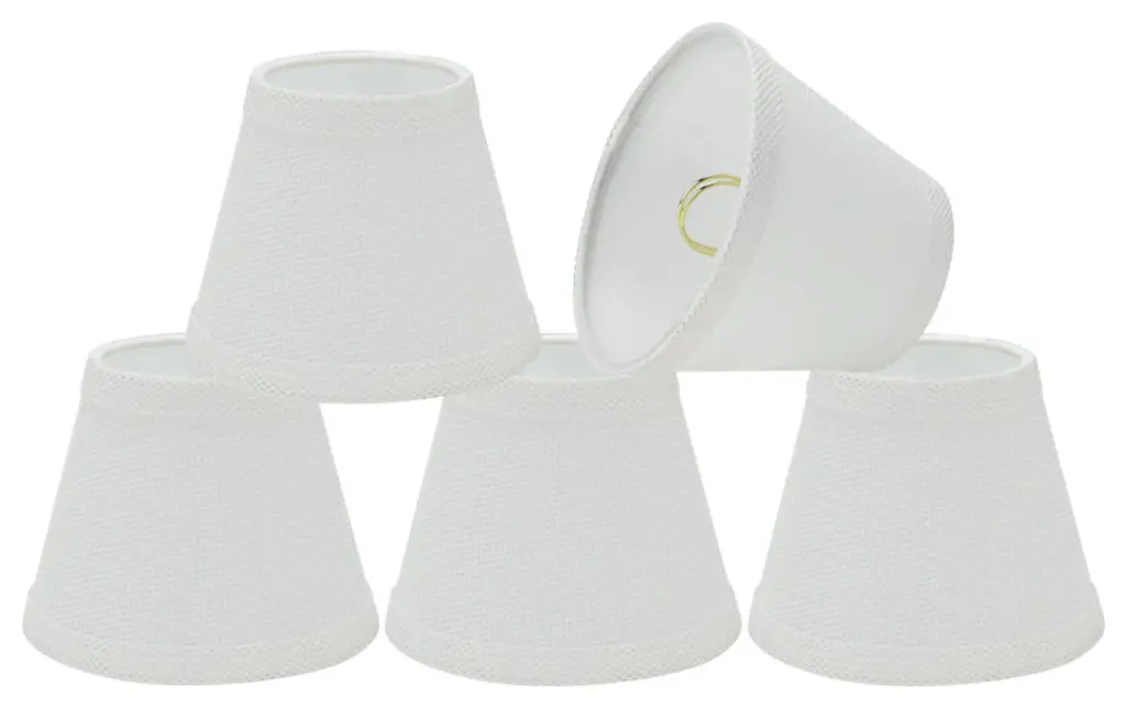 Aspen Creative is dedicated to offering a wide assortment of attractive and well-priced portable lamps, kitchen pendants, vanity wall fixtures, outdoor lighting fixtures, lamp shades, and lamp accessories. We have in-house designers that follow current trends and develop cool new products to meet those trends. Product Detail• Hardback Empire Shape Transitional (Mini Chandelier Lamp Shades) in White• Hardback Empire (clip on) Replacement Shade | Linen Fabric• Clip-on style fitter designed for bare Torpedo chandelier bulbs (bend tip bulbs not recommended) either in candelabra base (E12) or medium base (E26), light bulbs not included• Clip On Lamp Shade Dimensions: 3" top x 4" bottom x 4" slant height