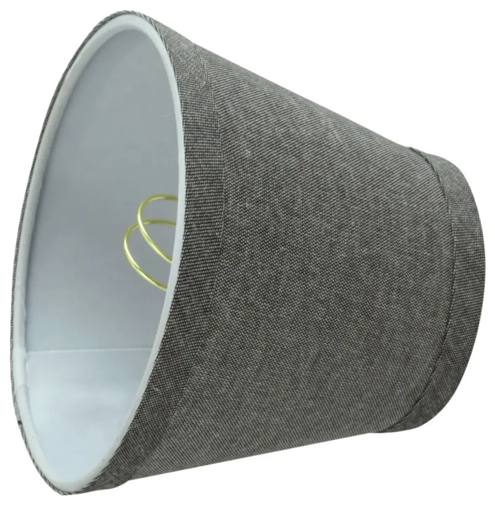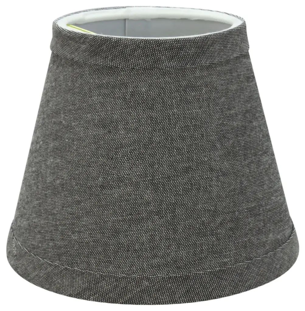 Aspen Creative is dedicated to offering a wide assortment of attractive and well-priced portable lamps, kitchen pendants, vanity wall fixtures, outdoor lighting fixtures, lamp shades, and lamp accessories. We have in-house designers that follow current trends and develop cool new products to meet those trends. Product Detail• Hardback Empire Shape Transitional (Mini Chandelier Lamp Shades) in Grey• Hardback Empire (clip on) Replacement Shade | Textured Fabric• Clip-on style fitter designed for bare Torpedo chandelier bulbs (bend tip bulbs not recommended) either in candelabra base (E12) or medium base (E26), light bulbs not included• Clip On Lamp Shade Dimensions: 3" top x 5" bottom x 4" slant height