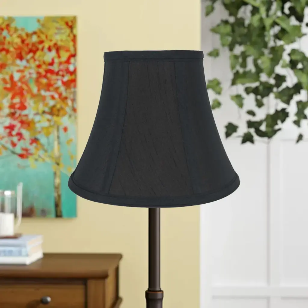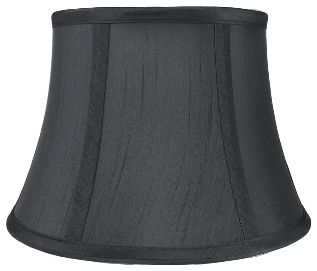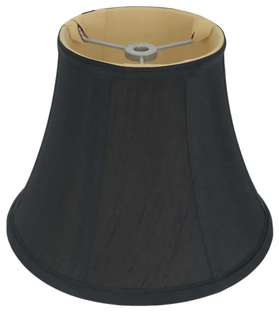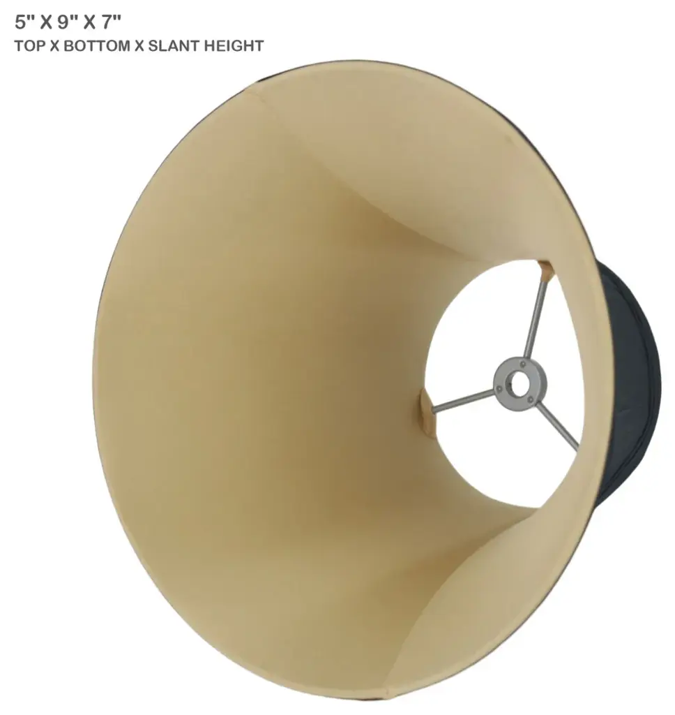 Urbanest faux silk bell lampshadeFaux silk bell with a brushed nickel spider fitter. Shade is black faux silk with beige lining.Top diameter measures 5" across, bottom diameter measures 9" across and 7" slant height.Maximum recommended wattage is 60 watts. Bulb not included.List price is for 1 shade.