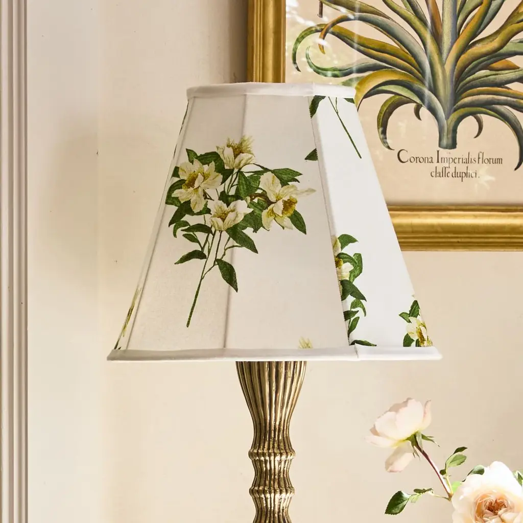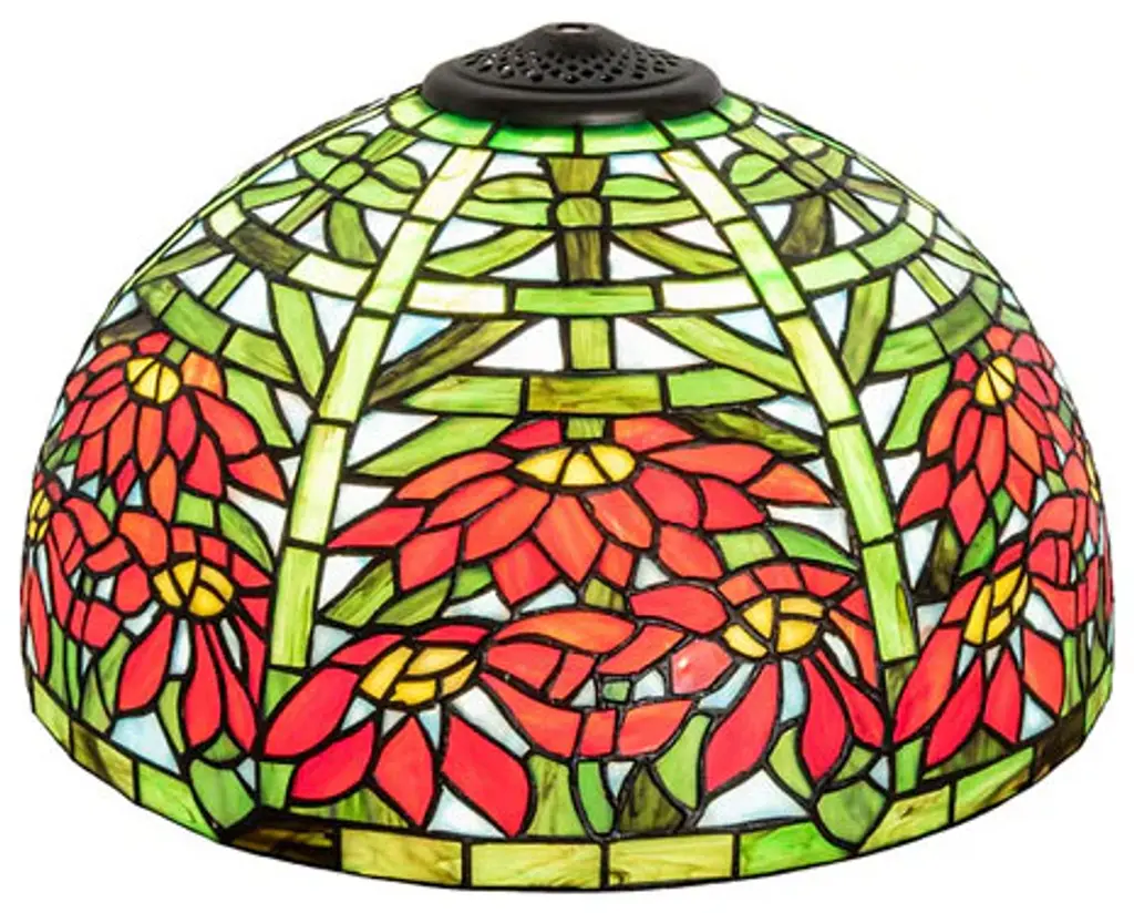 UpgradeLights Black Floral 10 Inch Hex Shaped Chimney Style Lampshade Replacement Hex Black floral Design Dimensions: 4.5 inch top, 10 inch bottom, 5.25 inch side slant Fits over a glass chimney for oil type lamps Center brass fitter ring on top of shade slides down over lamp chimney to rest above bulge Hex Black Floral Design with black background• Oil lamps are the most common type of lampshade that take a shade with a chimney fitter
