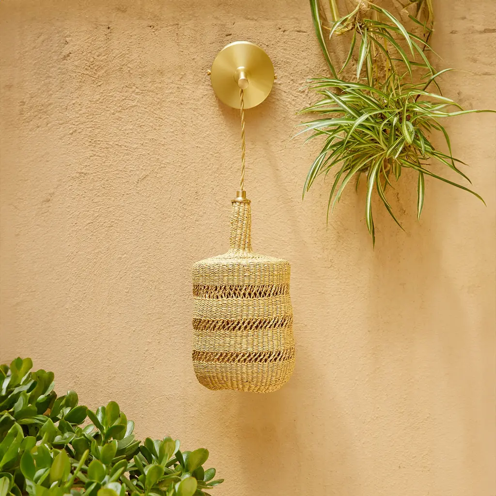 Hand-braided from natural rattan, the Braided Lampshade's design allows subtle light to filter through the weave, creating a cozy atmosphere, while the open bottom provides focused illumination. Available in three distinct shapes—Belly, Bottle, and Disc—each variant brings a unique touch to your space. Please note, that slight variations in color and shape may occur due to the handcrafted nature of the product.