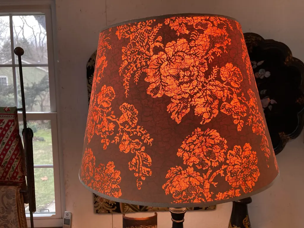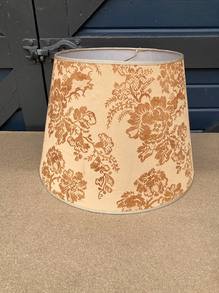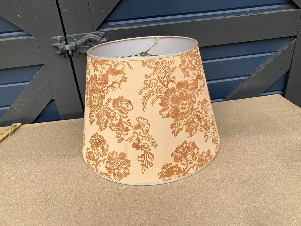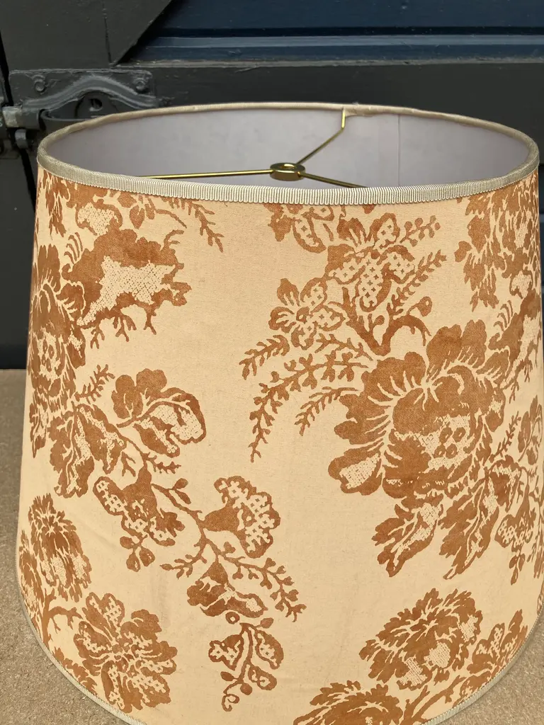 A lampshade handmade from vintage Brunchwig & Fils printed cotton. Measurements: top 11” bottom 16”side 11”