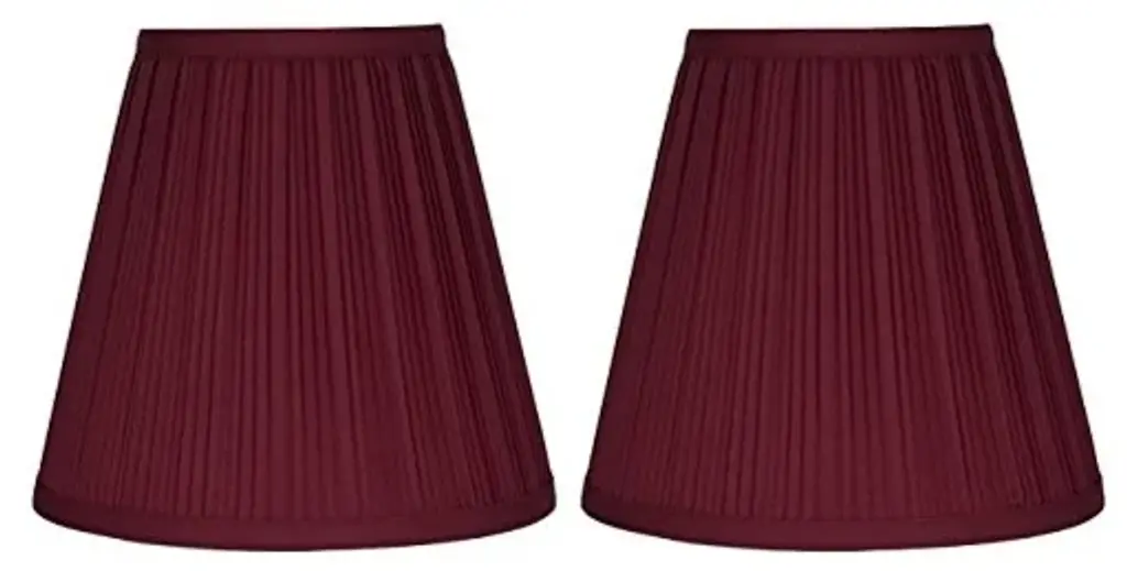 Urbanest burgundy fabric lamp shadeSet of 2Hardback; Powder coated white spiderMeasurements: 5-Inch Top; 9-Inch Bottom; 8.5-Inch Slant HeightUse 60 Watts Max bulb
