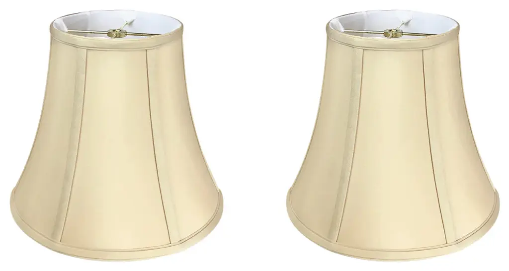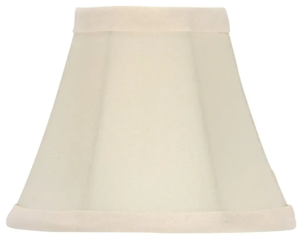 Upgradelights Set of 2 Chandelier Lamp Shade Bell Shape 5 Inch Eggshell Silk White Eggshell Shantung silk shade in soft bell shape Shade Dimensions: 2.5 inch top, 5 inch bottom, 4 inch height Finest Quality Shantung Silk with matching trim on top and bottom Brass Flame clip (clips onto 40 watt candelabra bulb) Set of 2