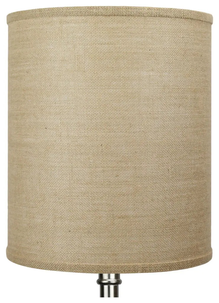 Urbanest classic drum in dusty rose burlap.The lampshade measures 8" across the top, 8" across the bottom, and 7" overall height.The lampshade is fitted with a nickel spider fitter.Maximum recommended wattage is 100 watts. Bulb not included.Lining of shade is white.