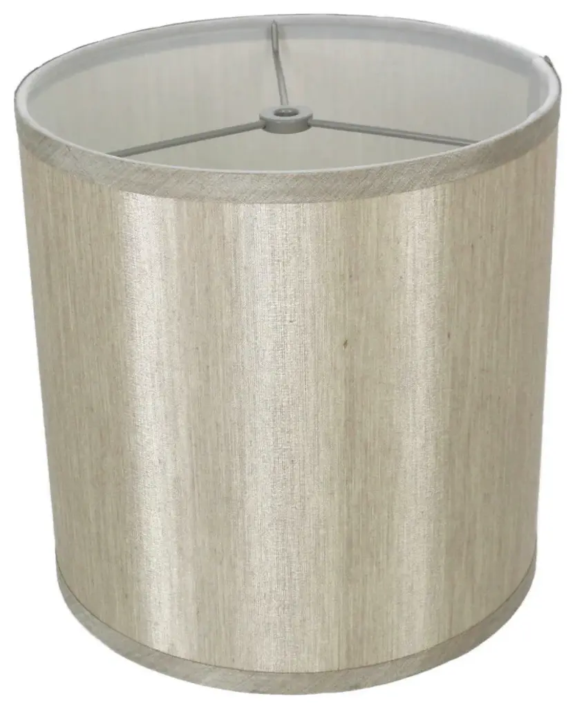 Urbanest champagne faux silk hardback perfect drum lamp shade. Shades measure 10" across the top, 10" across the bottom, and 10" overall height. Lining is white; spider fitter is brushed nickel. Maximum recommended wattage is 100 watts. Bulb not included.
