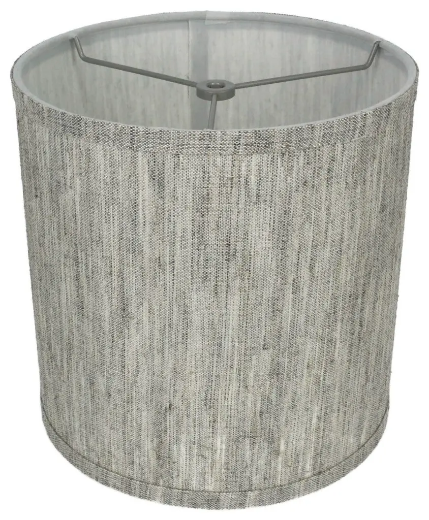 Urbanest classic smooth linen lampshade in storm. This linen shade has a different finish from our classic linen shade, and gives a high-end look to any lamp.The lampshade measures 10" across the top, 10" across the bottom, and 10" overall height.The lampshade is fitted with a nickel spider fitter.Maximum recommended wattage is 100 watts. Bulb not included.Lining of shade is white.