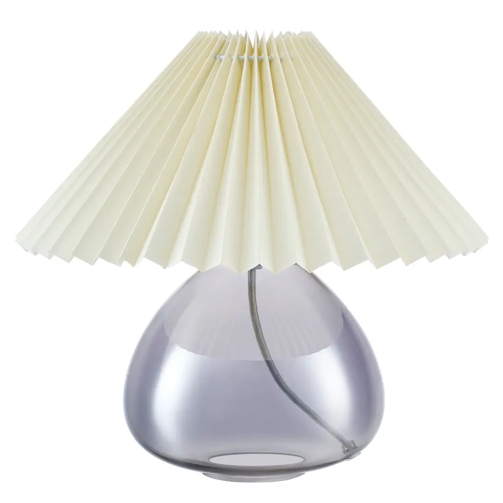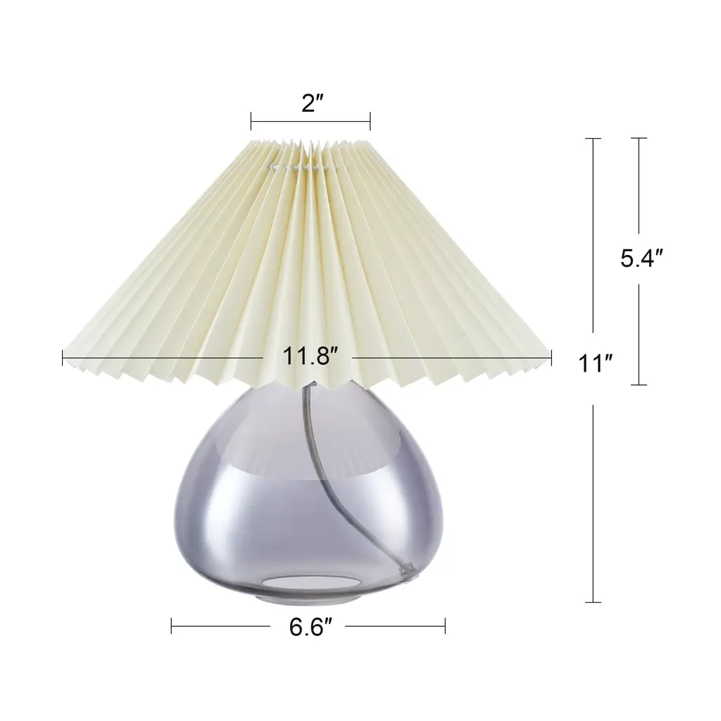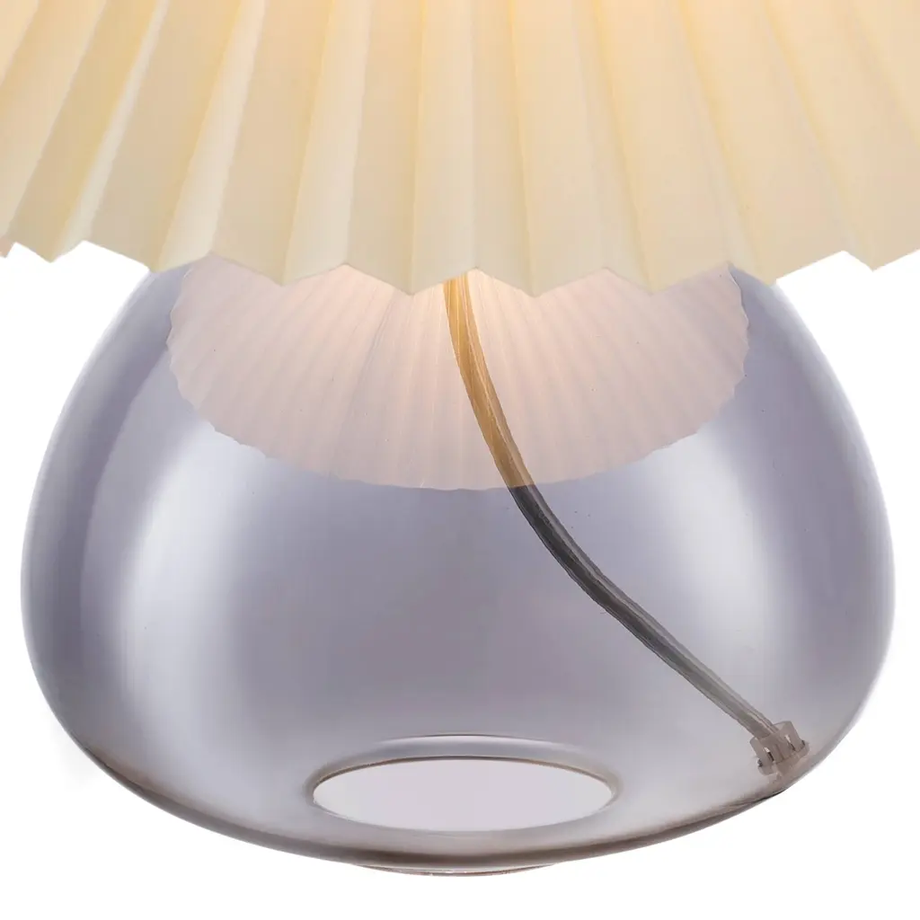 Minimalist blended with a sprinkle of chic vintage appeal, this table lamp is sure to shine as it rounds out a living room desk vignette or lends illumination to a nightstand. Contrasted by the pleated nylon shade sitting up top, the bell-shaped gold/grey glass base completes the aesthetic with an elegant glossy touch. Perfect when perched on your bedside table, work desk, or hallway console, our desk lamp will illuminate your way through late-night reading, meditating, and more.Features:Specifications: