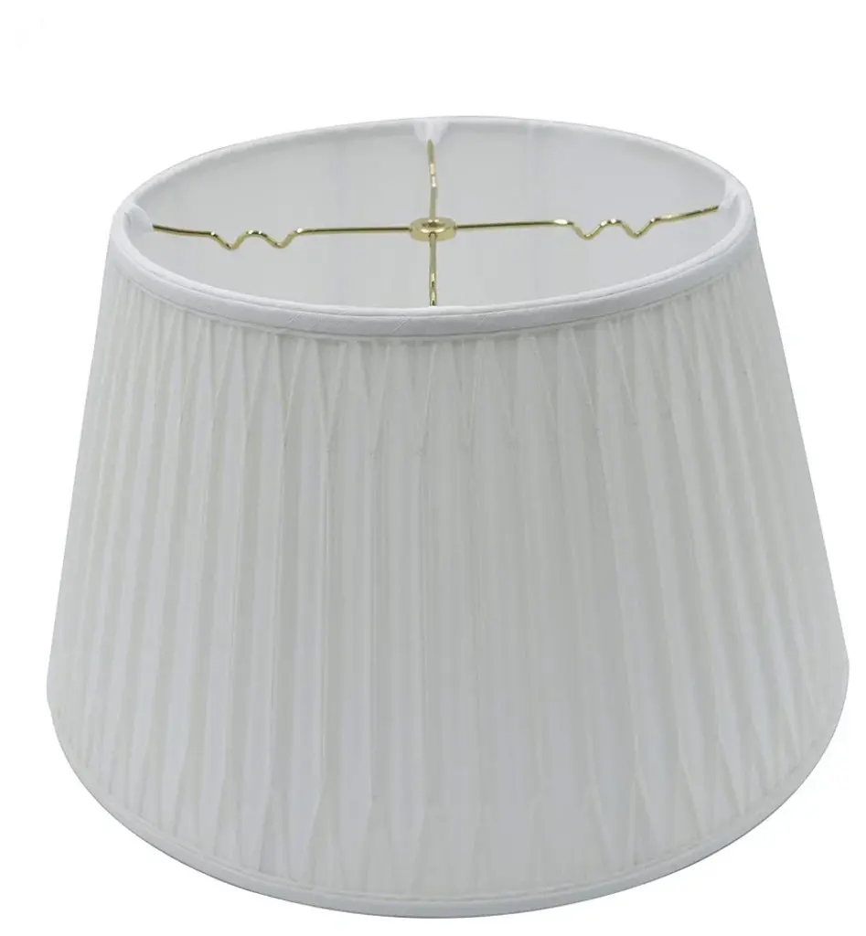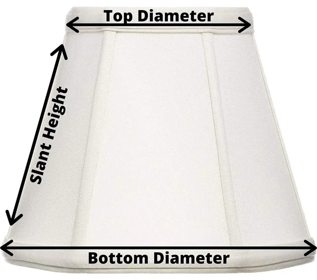 SHADE DIMENSIONS: 11 X 17.5 X 9.5 Inches (Top X Bottom X Slant Height). See "How to Measure Lamp Shade" below in product description). Universal size for almost any harp. Perfect replacement for floor or table lamps.POLISHED BRASS WASHER Fitter with reflector clips built into the frame so that it will sit on a glass globe (can still use the washer if needed). Fitter sits on top of the lamp harp and is secured by a finial. Fitter has a 1/2 inch drop into top of shade, inner dimension of washer ring measures inch.FINELY TAILORED Shantung Silk with softback lining to create a soft, warm glow. Textural pleating for a classic english country style look. Ergonomically designed to direct light toward the top and bottom of the shade.PROFESSIONAL DESIGNER QUALITY: Features a stylish double smocked pleat design and classic shallow drum shape to compliment a variety of decor. (Pair with any lamp base to add a touch of style). Subtle detail for a chic look.American family owned small business, USA based customer service. Email us for available quantity discounts. Orders before 12 pm get shipped the same day.