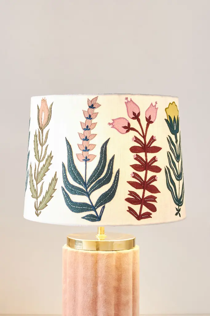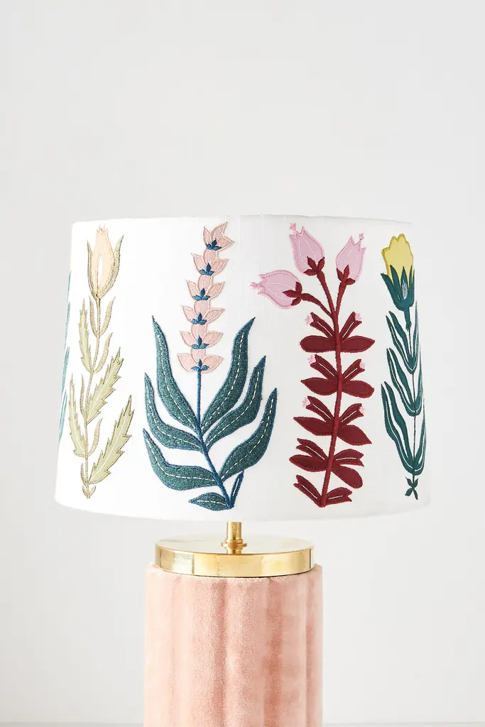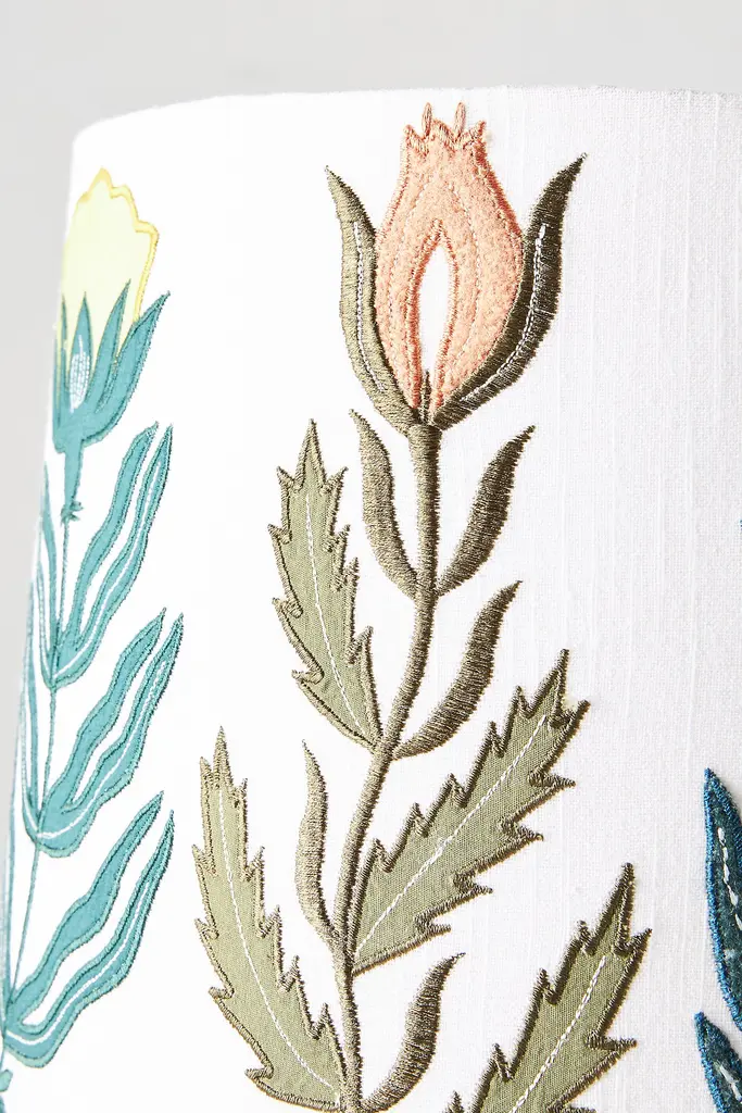 Overflowing with embroidered florals, this shade transforms any lamp base into a work of art.