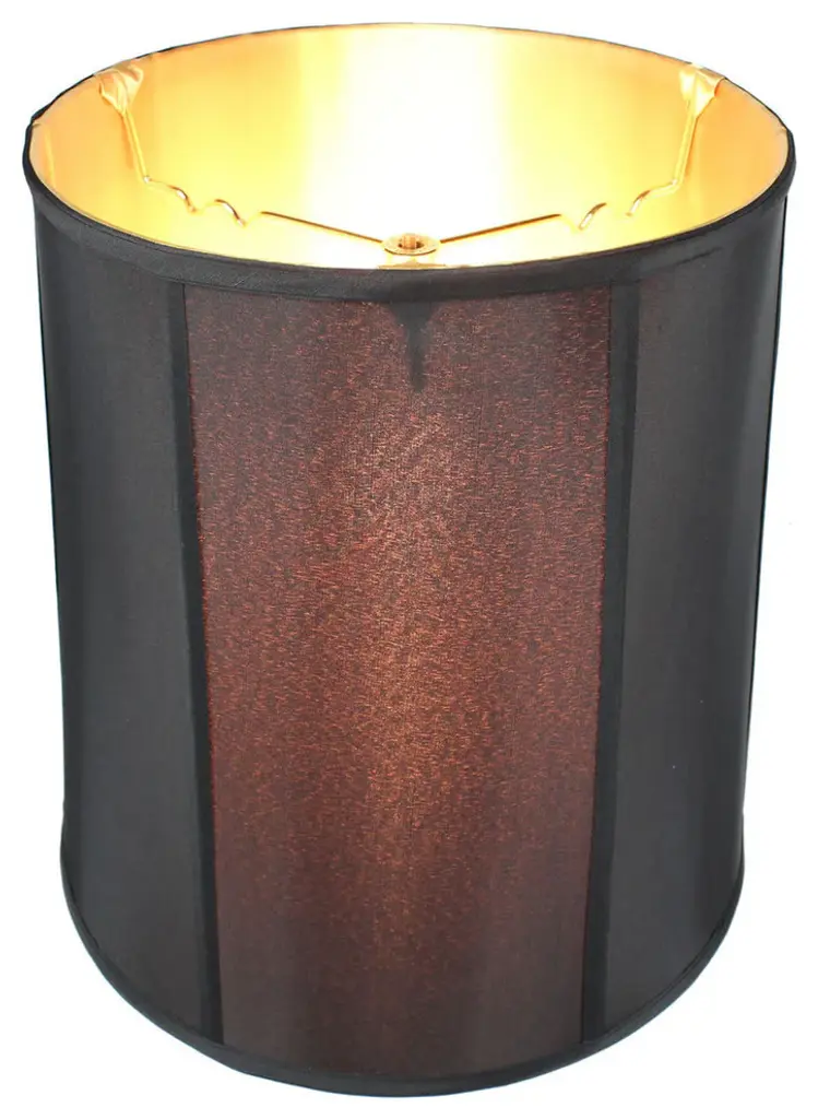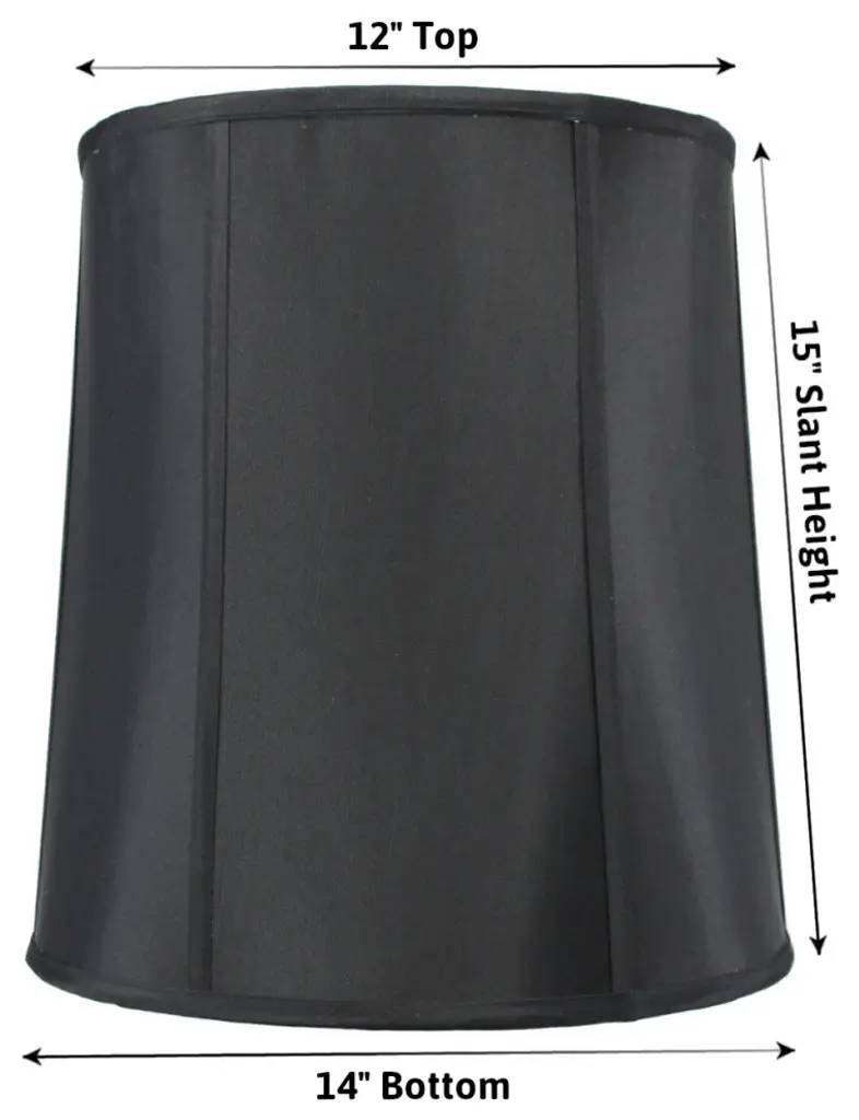 Home Concept Signature Shades feature the finest premium shantung fabric. Durable Upholstery-Quality fabric means your new lampshade will last for decades. It wont get brittle from smoke or sunlight like less expensive fabrics. Heavy brass and steel frames means your shades can withstand abuse from kids and pets. It''s a difference you can feel when you lift it. Premium Black Shantung Fabric Spider Drop:2 Casual Style Drum Lampshade, Finial not Included Deluxe lampshade, found in better lighting showrooms. Durable Hotel quality shade. 12 Top x 14 Bottom x 15 Slant Height This shade comes with a standard fitter that fits most traditional harps (called a Washer or Spider Fitter, but it also uses a notched bowl fitter that can be used with a lamp that uses a 6 or 8 reflector bowl Fits best with a 13 harp.