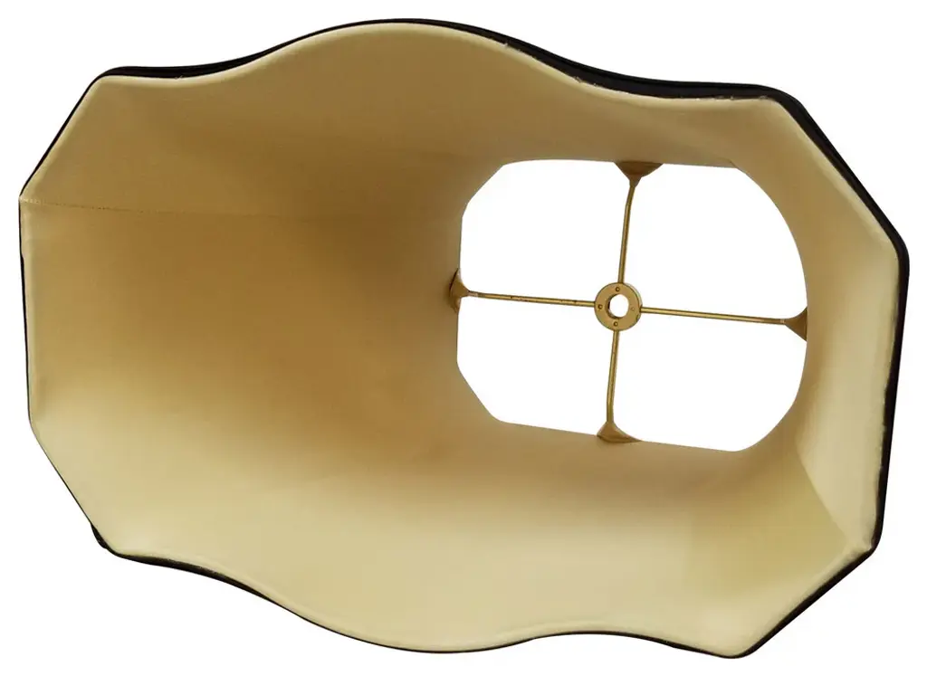 This Fancy Bottom Rectangle Basic Lampshade is a part of Royal Designs, Inc. Timeless Basic Shade Collection and is perfect for anyone who is looking for a traditional yet stunning lampshade. Royal Designs has been in the lampshade business since 1993 with their multiple shade lines that exemplify handcrafted quality and value.Exterior Fabric: Hand Tailored Silk-Type Shantung (except Linen, Mouton, Burlap & Faux Rawhide fabrics)Interior Fabric: Off-White Softback Lining (Black, Burlap & Faux Rawhide fabrics have gold lining)Washer: Standard brass-finish spider fitter, use a finial to fasten shade. Trim: Top and bottom trim (single or double) with vertical pipingFrame: Heavy grade rust resistant metal frameBulb: Suggested maximum wattage is 150-watt for most sizes Height is measured by slant height from top to bottom of the lampshades front facePlease measure your existing shade--a replacement harp may be needed for a proper fit or additional adjustment if changing height of shade