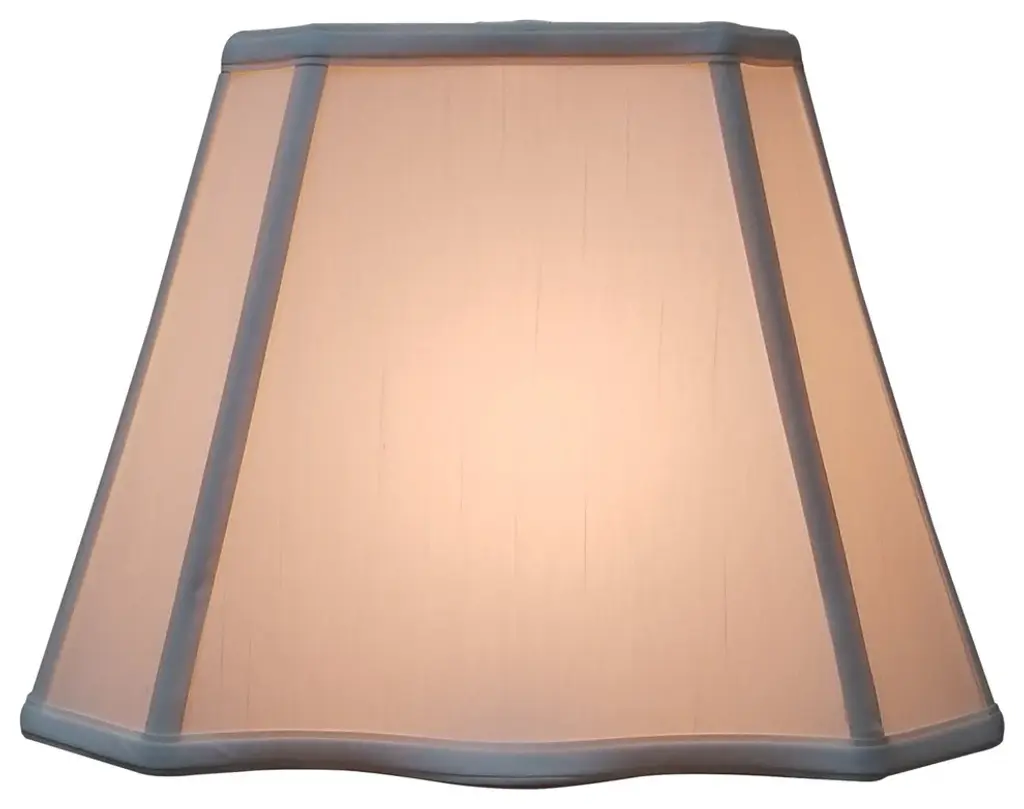 This Fancy Bottom Rectangle Basic Lampshade is a part of Royal Designs, Inc. Timeless Basic Shade Collection and is perfect for anyone who is looking for a traditional yet stunning lampshade. Royal Designs has been in the lampshade business since 1993 with their multiple shade lines that exemplify handcrafted quality and value.Exterior Fabric: Hand Tailored Silk-Type Shantung (except Linen, Mouton, Burlap & Faux Rawhide fabrics)Interior Fabric: Off-White Softback Lining (Black, Burlap & Faux Rawhide fabrics have gold lining)Washer: Standard brass-finish spider fitter, use a finial to fasten shade. Trim: Top and bottom trim (single or double) with vertical pipingFrame: Heavy grade rust resistant metal frameBulb: Suggested maximum wattage is 150-watt for most sizes Height is measured by slant height from top to bottom of the lampshades front facePlease measure your existing shade--a replacement harp may be needed for a proper fit or additional adjustment if changing height of shade