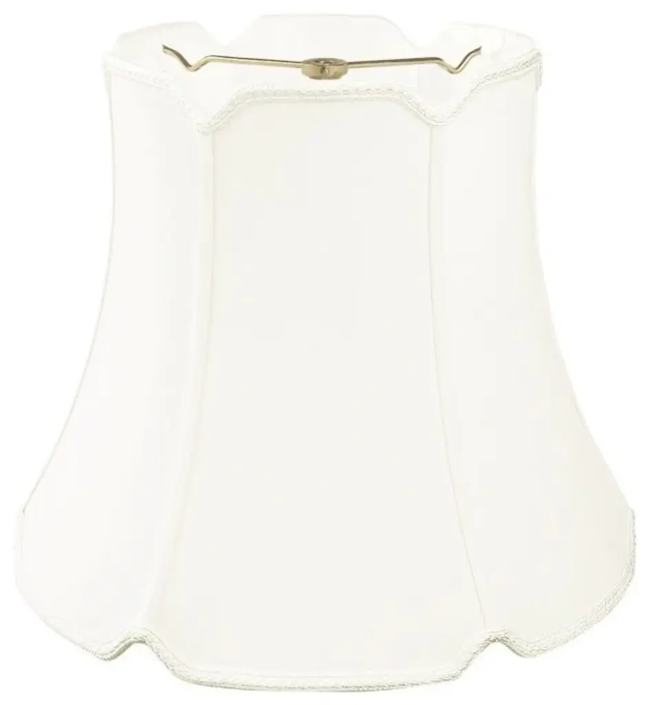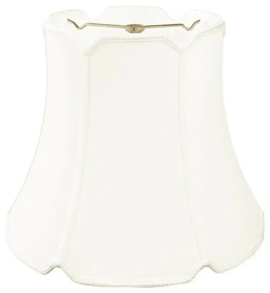 This Fancy Square Designer Lampshade is a part of Royal Designs, Inc. Timeless Designer Shade Collection and is perfect for anyone who is looking for an elegant yet detailed lampshade. Royal Designs has been in the lampshade business since 1993 with multiple shade lines that exemplify handcrafted quality and value.Exterior Fabric: Hand Tailored Silk-Type Shantung (except Linen fabrics)Interior Fabric: Off-White softback lining (Black and other colored fabrics have gold lining)Washer: Standard brass-finish spider fitter, use a finial to fasten shade. (All shades with 9"+ top diameter have a V-Notch fitter for use on a 6 or 8 reflector bowl)Trim: Top and bottom designer trim (single, double or braided) with vertical pipingFrame: Heavy grade rust resistant metal frameBulb: Suggested maximum wattage is 150-watt for most sizes (clip on shade max 60W)Height is measured by slant height from top to bottom of the lampshades front facePlease measure your existing shade--a replacement harp may be needed for a proper fit or additional adjustment if changing height of shade