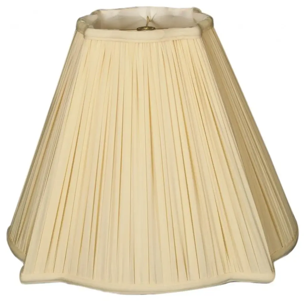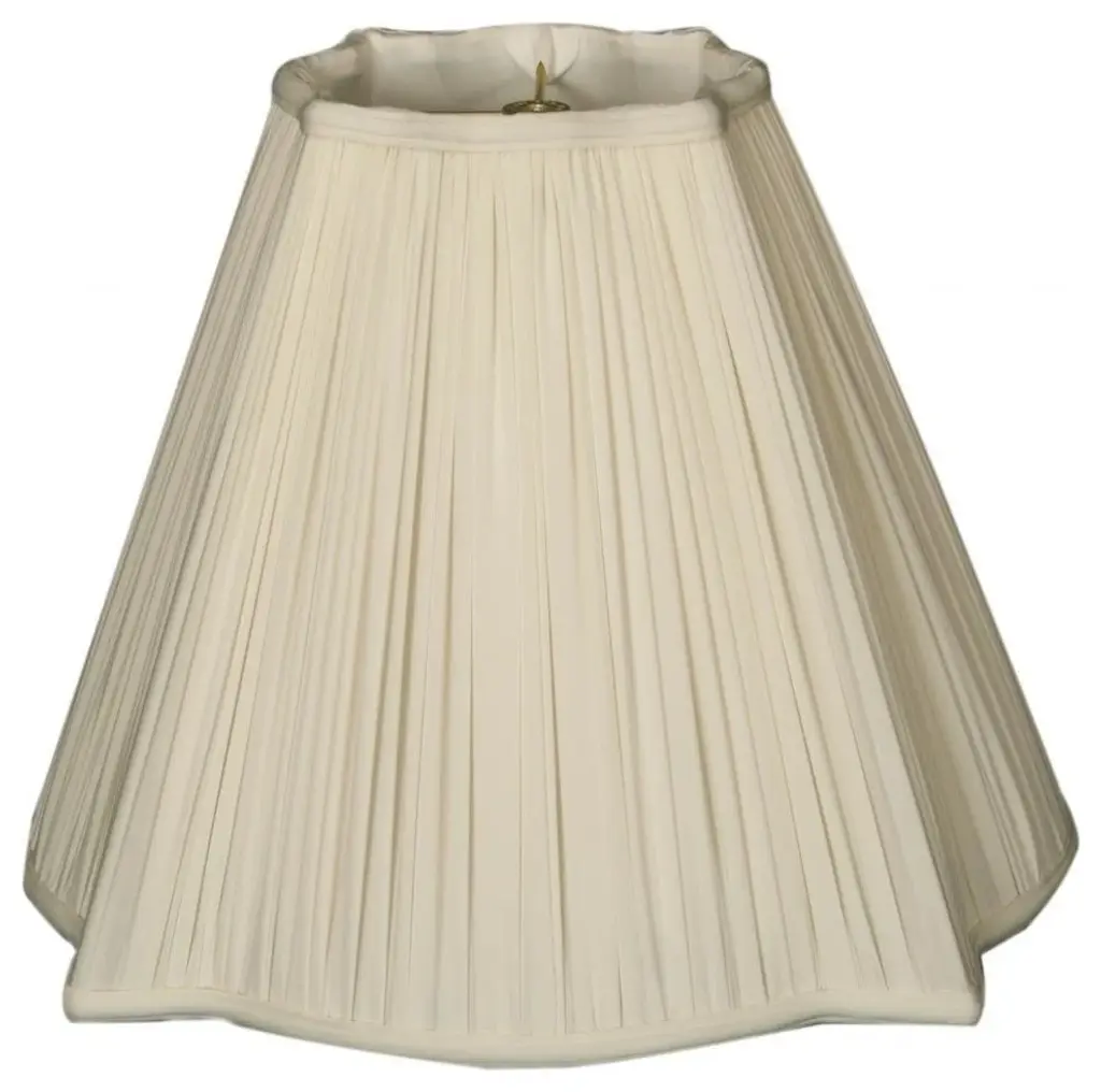 This Fancy Square Gather Pleat Basic Lampshade is a part of Royal Designs, Inc. Timeless Basic Shade Collection and is perfect for anyone who is looking for a traditional yet stunning lampshade. Royal Designs has been in the lampshade business since 1993 with their multiple shade lines that exemplify handcrafted quality and value.Exterior Fabric: Hand Tailored Silk-Type Shantung (except Linen, Mouton, Burlap & Faux Rawhide fabrics)Interior Fabric: Off-White Softback Lining (Black, Burlap & Faux Rawhide fabrics have gold lining)Washer: Standard brass-finish spider fitter, use a finial to fasten shade. (All shades with 9"+ top diameter have a V-Notch fitter for use on a 6 or 8 reflector bowl)Trim: Top and bottom trim (single or double) with vertical pipingFrame: Heavy grade rust resistant metal frameBulb: Suggested maximum wattage is 150-watt for most sizes Height is measured by slant height from top to bottom of the lampshades front facePlease measure your existing shade--a replacement harp may be needed for a proper fit or additional adjustment if changing height of shade