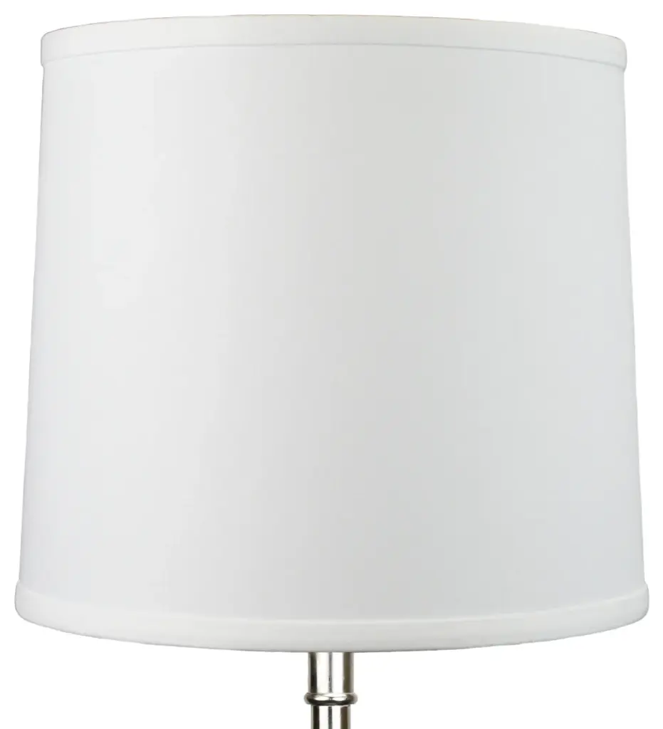 This Fenchel Shades lamp shade has a top diameter of 10 inches, a bottom diameter of 11 inches, and a slant height of 10 inches. The vertical height of this shade is about 10 inches. This attachment is called a washer attachment and is nickel in color. It is also known as a spider attachment. If your lamp has a harp, then you will generally need a washer attachment. The hole size (inner-dimension) of a washer attachment measures slightly under 1/2 inch. The drop on this particular attachment is 1/2 inch. That means, it recesses about 1/2 inch below the top of the lamp shade. This Product is proudly made in the USA with US materials.