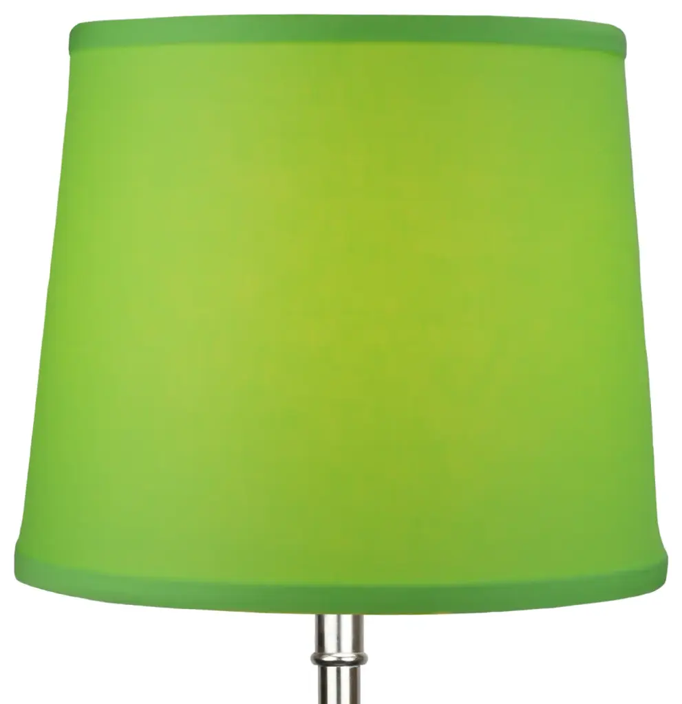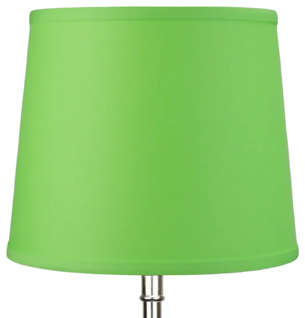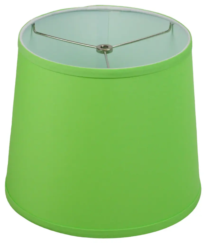 This Fenchel Shades lamp shade has a top diameter of 10 inches, a bottom diameter of 12 inches, and a slant height of 10 inches. The vertical height of this shade is about 10 inches. This attachment is called a washer attachment and is nickel in color. It is also known as a spider attachment. If your lamp has a harp, then you will generally need a washer attachment. The hole size (inner-dimension) of a washer attachment measures slightly under 1/2 inch. The drop on this particular attachment is 1/2 inch. That means, it recesses about 1/2 inch below the top of the lamp shade. This Product is proudly made in the USA with US materials. • Please note the COLOR of this shade is represented in the color swatch picture •