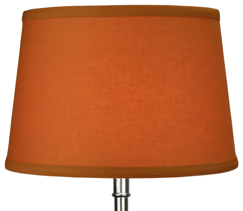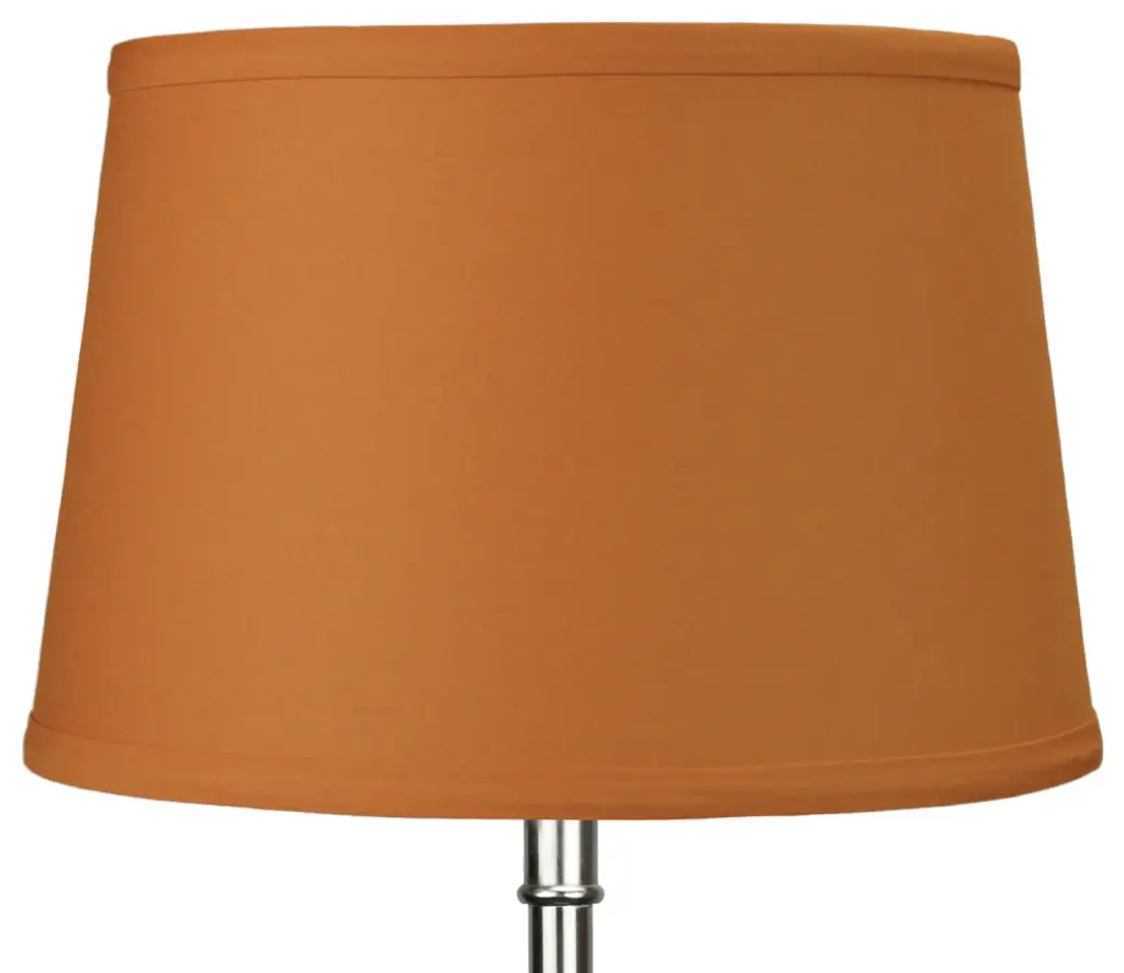 This Fenchel Shades lamp shade has a top diameter of 10 inches, a bottom diameter of 12 inches, and a slant height of 8 inches and comes in a pack of two. The vertical height of this shade is about 8 inches. This attachment is called a washer attachment and is nickel in color. It is also known as a spider attachment. If your lamp has a harp, then you will generally need a washer attachment. The hole size (inner-dimension) of a washer attachment measures slightly under 1/2 inch. The drop on this particular attachment is 1/2 inch. That means, it recesses about 1/2 inch below the top of the lamp shade. This Product is proudly made in the USA with US materials.