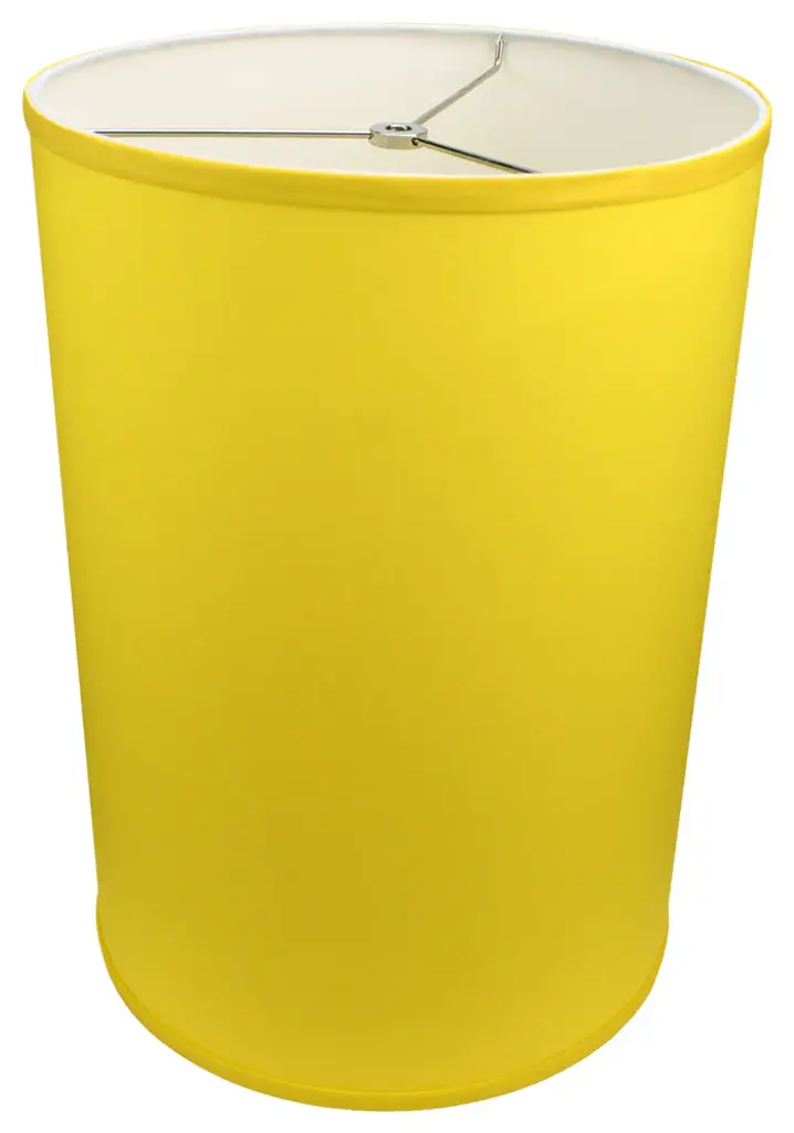 This lamp shade is made with pride in the USA, and construction does not begin until you place your order. This shade is equipped with a nickel finish washer fitter. This is the most common fitter type. It consists of a small washer with an inner diameter hole size of approximately 1/2". The washer generally rests on the top of a metal harp above the light bulb and is held in place by a screw-on finial. The outside of the lamp shade is a linen fabric covering. The inside is a white styrene (white plastic). The top and bottom of this item is adorned with a 1/2" band of single fold lampshade trim. The trim is the same color as the covering.
