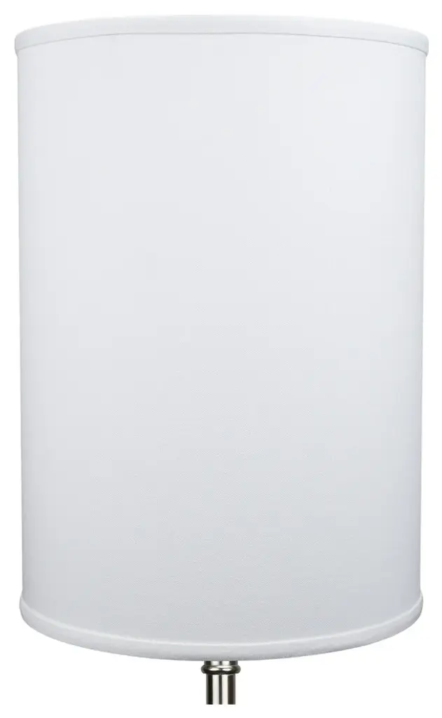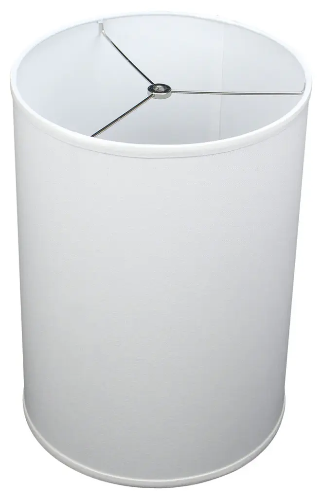 This lamp shade is made with pride in the USA, and construction does not begin until you place your order. This shade is equipped with a nickel finish washer fitter. This is the most common fitter type. It consists of a small washer with an inner diameter hole size of approximately 1/2". The washer generally rests on the top of a metal harp above the light bulb and is held in place by a screw-on finial. The outside of the lamp shade is a linen fabric covering. The inside is a white styrene (white plastic). The top and bottom of this item is adorned with a 1/2" band of single fold lampshade trim. The trim is the same color as the covering.