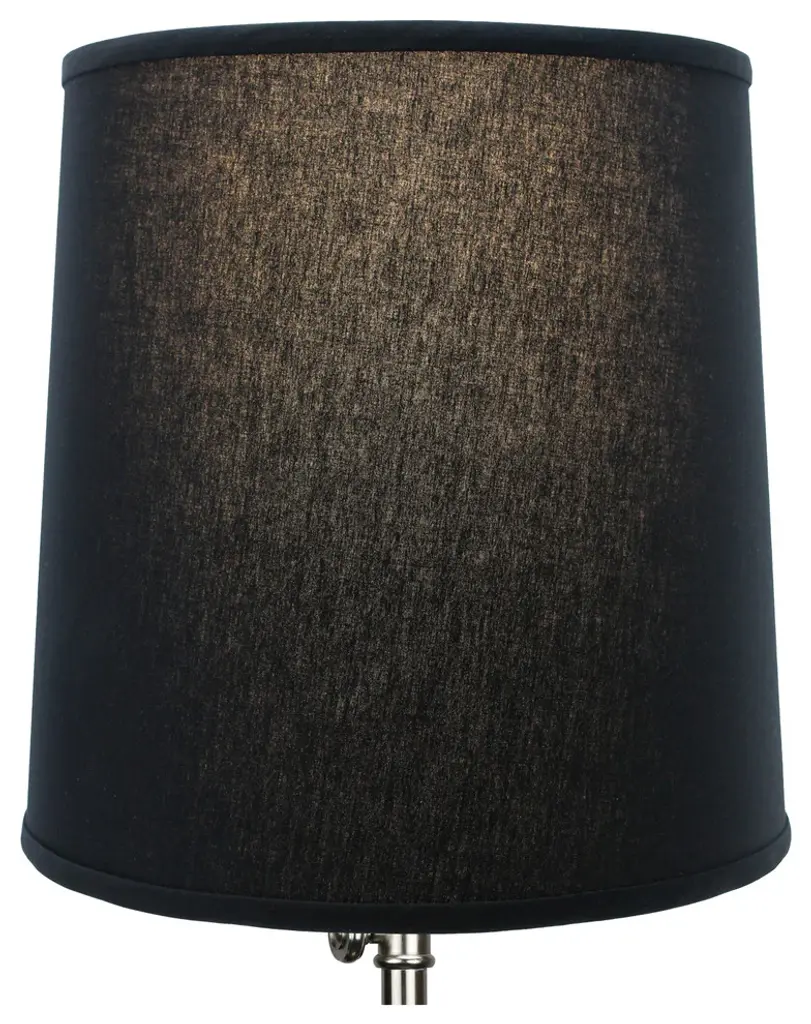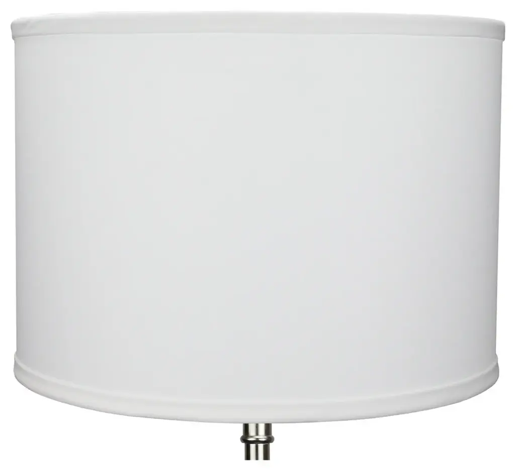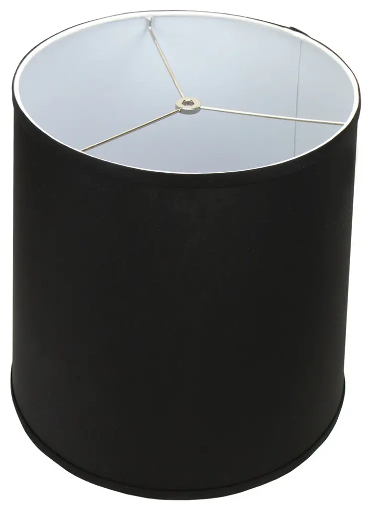 This lamp shade is made with pride in the USA, and construction does not begin until you place your order. This shade measures 13" Top Diameter x 15" Bottom Diameter x 15" Slant Height. This shade is equipped with a nickel finish washer fitter. This is the most common fitter type. It consists of a small washer with an inner diameter hole size of approximately 1/2". The washer generally rests on the top of a metal harp above the light bulb and is held in place by a screw-on finial. The outside of the lamp shade has a fabric covering. The inside is a white styrene (white plastic). The top and bottom of this item is adorned with a 1/2" band of single fold lampshade trim. The trim is the same color as the covering.