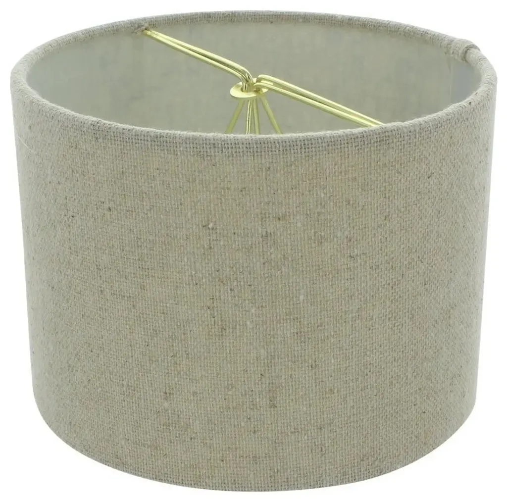 This lamp shade is made with pride in the USA, and construction does not begin until you place your order. This shade measures 14" Top Diameter x 14" Bottom Diameter x 12" Height. This shade is equipped with a nickel finish washer fitter. This is the most common fitter type. It consists of a small washer with an inner diameter hole size of approximately 1/2". The washer generally rests on the top of a metal harp above the light bulb and is held in place by a screw-on finial. The outside of the lamp shade has a fabric covering. The inside is a white styrene (white plastic). The top and bottom of this item is adorned with a 1/2" band of single fold lampshade trim. The trim is the same color as the covering.