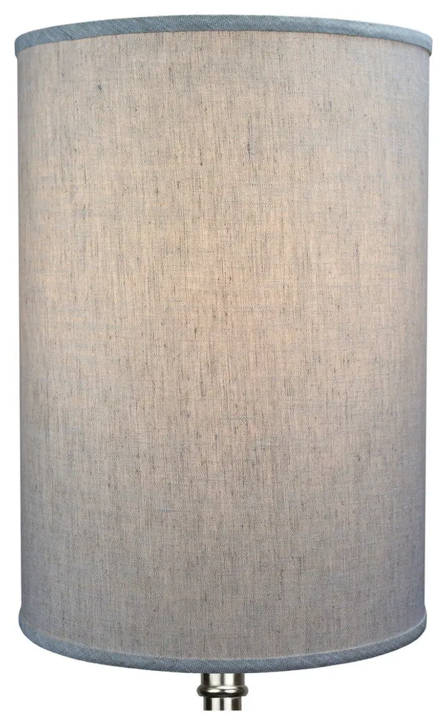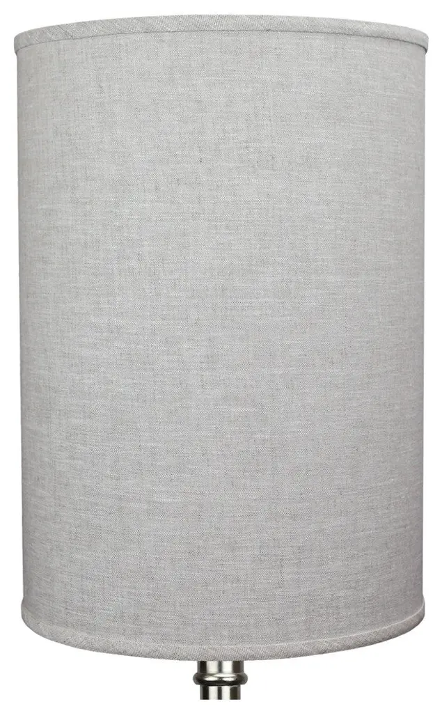 This lamp shade is made with pride in the USA, and construction does not begin until you place your order. This shade measures 14" Top Diameter x 14" Bottom Diameter x 20" Height. This shade is equipped with a nickel finish washer fitter. This is the most common fitter type. It consists of a small washer with an inner diameter hole size of approximately 1/2". The washer generally rests on the top of a metal harp above the light bulb and is held in place by a screw-on finial. The outside of the lamp shade has a fabric covering. The inside is a white styrene (white plastic). The top and bottom of this item is adorned with a 1/2" band of single fold lampshade trim. The trim is the same color as the covering.
