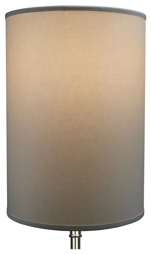 This lamp shade is made with pride in the USA, and construction does not begin until you place your order. This shade measures 14" Top Diameter x 14" Bottom Diameter x 20" Height. This shade is equipped with a nickel finish washer fitter. This is the most common fitter type. It consists of a small washer with an inner diameter hole size of approximately 1/2". The washer generally rests on the top of a metal harp above the light bulb and is held in place by a screw-on finial. The outside of the lamp shade has a fabric covering. The inside is a white styrene (white plastic). The top and bottom of this item is adorned with a 1/2" band of single fold lampshade trim. The trim is the same color as the covering.