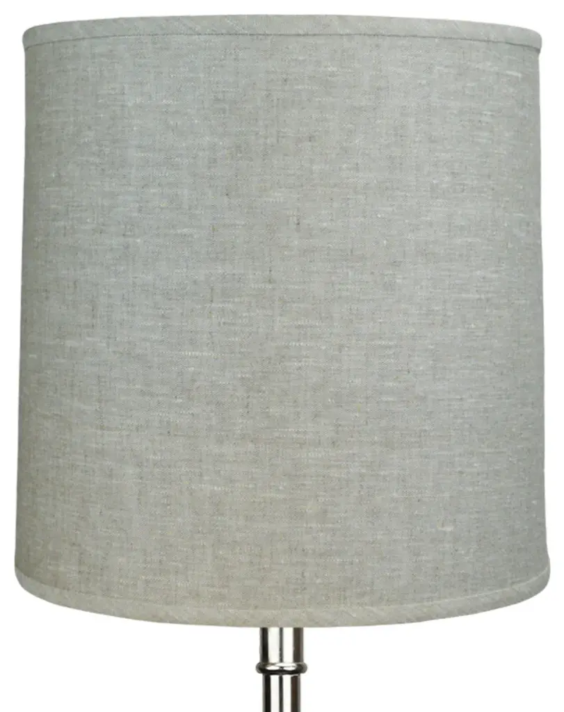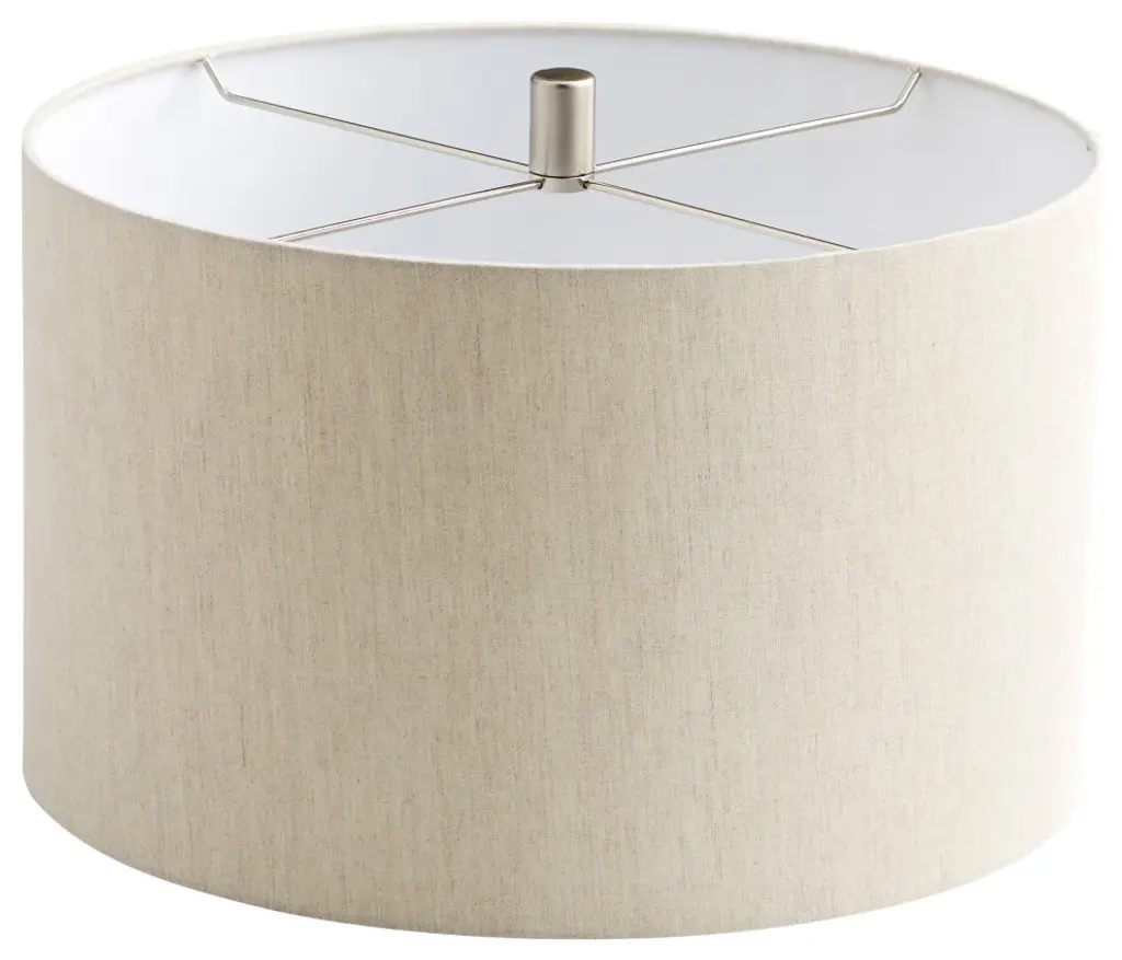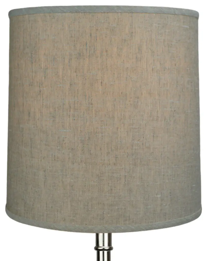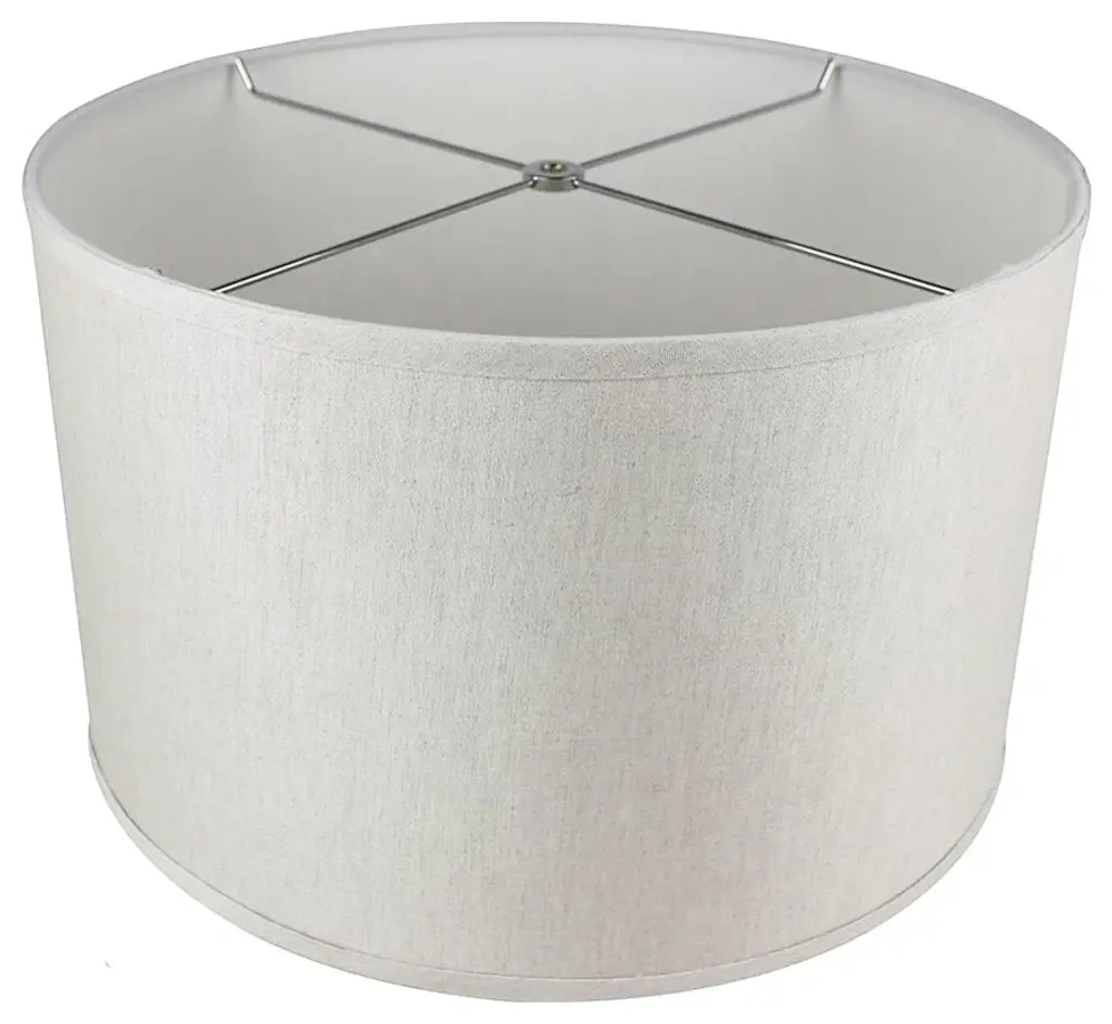 This Fenchel Shades lamp shade has a top diameter of 14 inches, a bottom diameter of 15 inches, and a slant height of 15 inches. The vertical height of this shade is about 15 inches. This attachment is called a washer attachment and is brass in color. It is also known as a spider attachment. If your lamp has a harp, then you will generally need a washer attachment. The hole size (inner-dimension) of a washer attachment measures slightly under 1/2 inch. This Product is proudly made in the USA with US materials.• Please note the COLOR of this shade is represented in the color swatch picture•