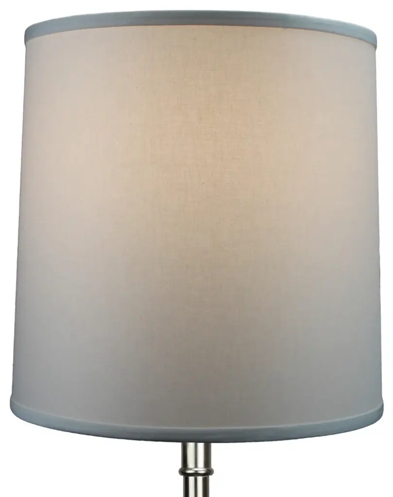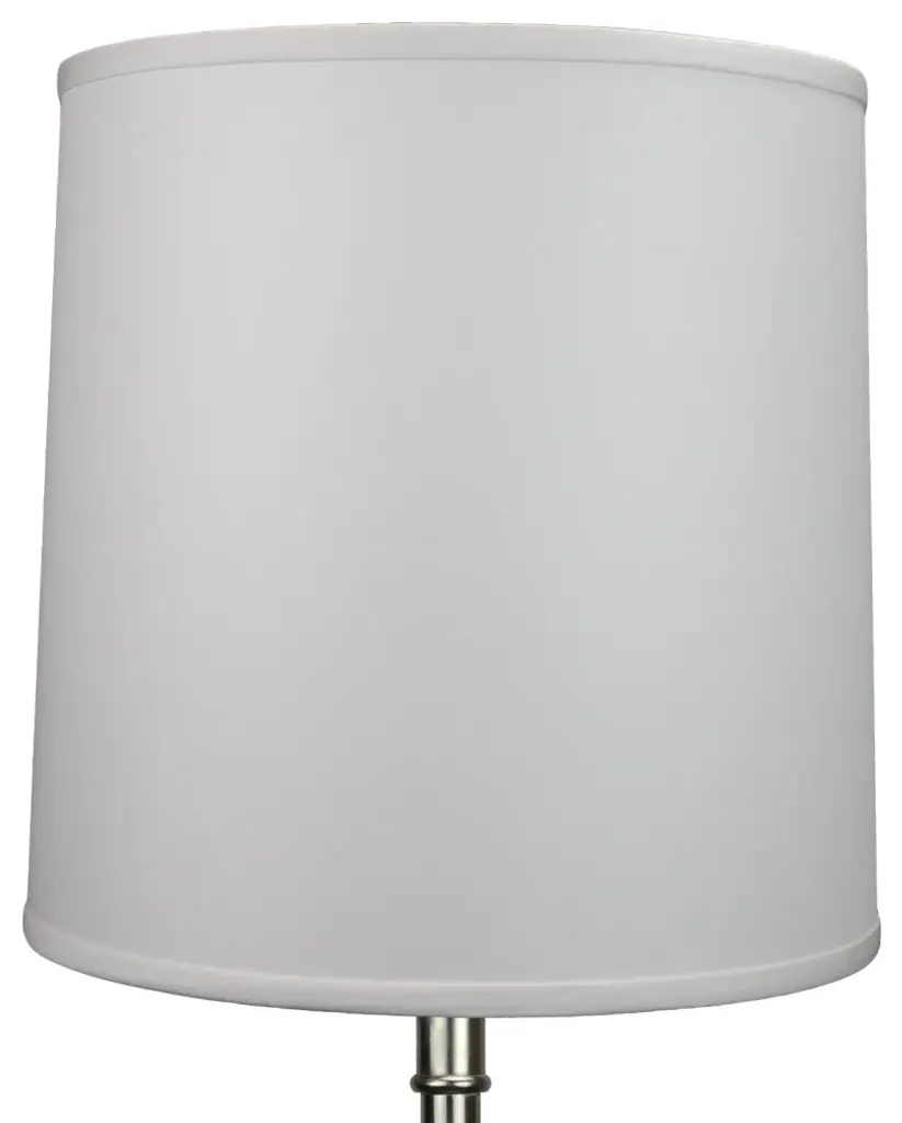 This Fenchel Shades lamp shade has a top diameter of 14 inches, a bottom diameter of 15 inches, and a slant height of 15 inches. The vertical height of this shade is about 15 inches. This attachment is called a washer attachment and is brass in color. It is also known as a spider attachment. If your lamp has a harp, then you will generally need a washer attachment. The hole size (inner-dimension) of a washer attachment measures slightly under 1/2 inch. This Product is proudly made in the USA with US materials.• Please note the COLOR of this shade is represented in the color swatch picture•