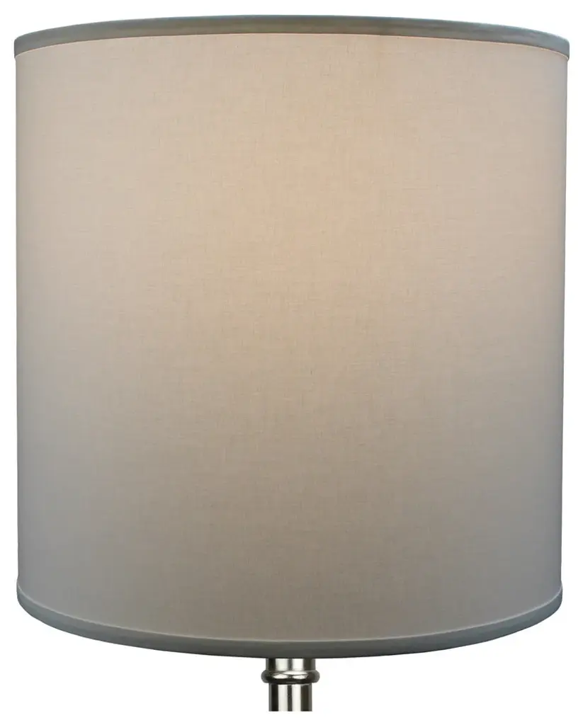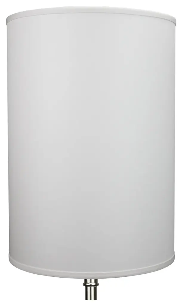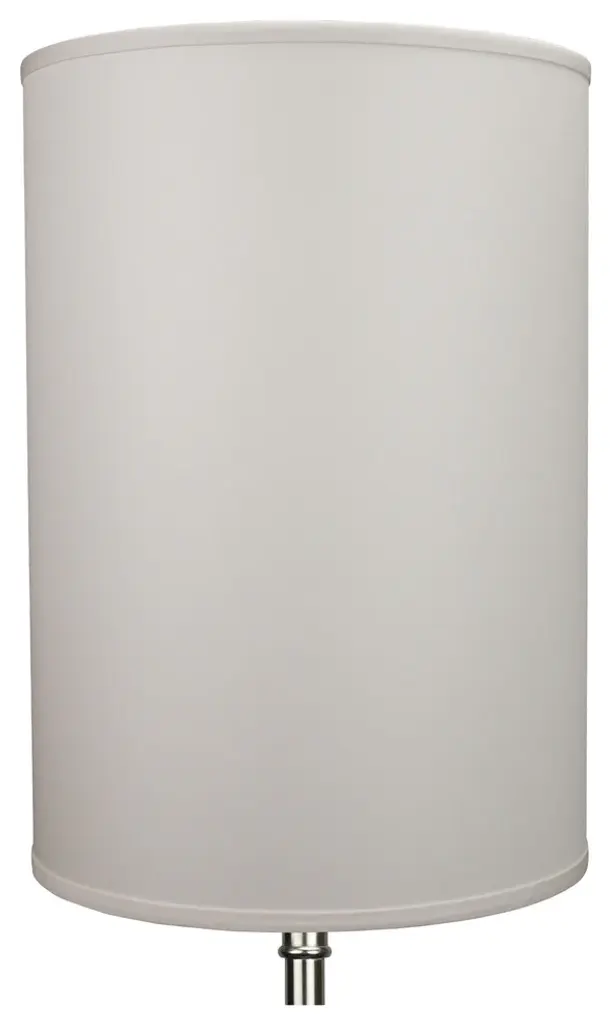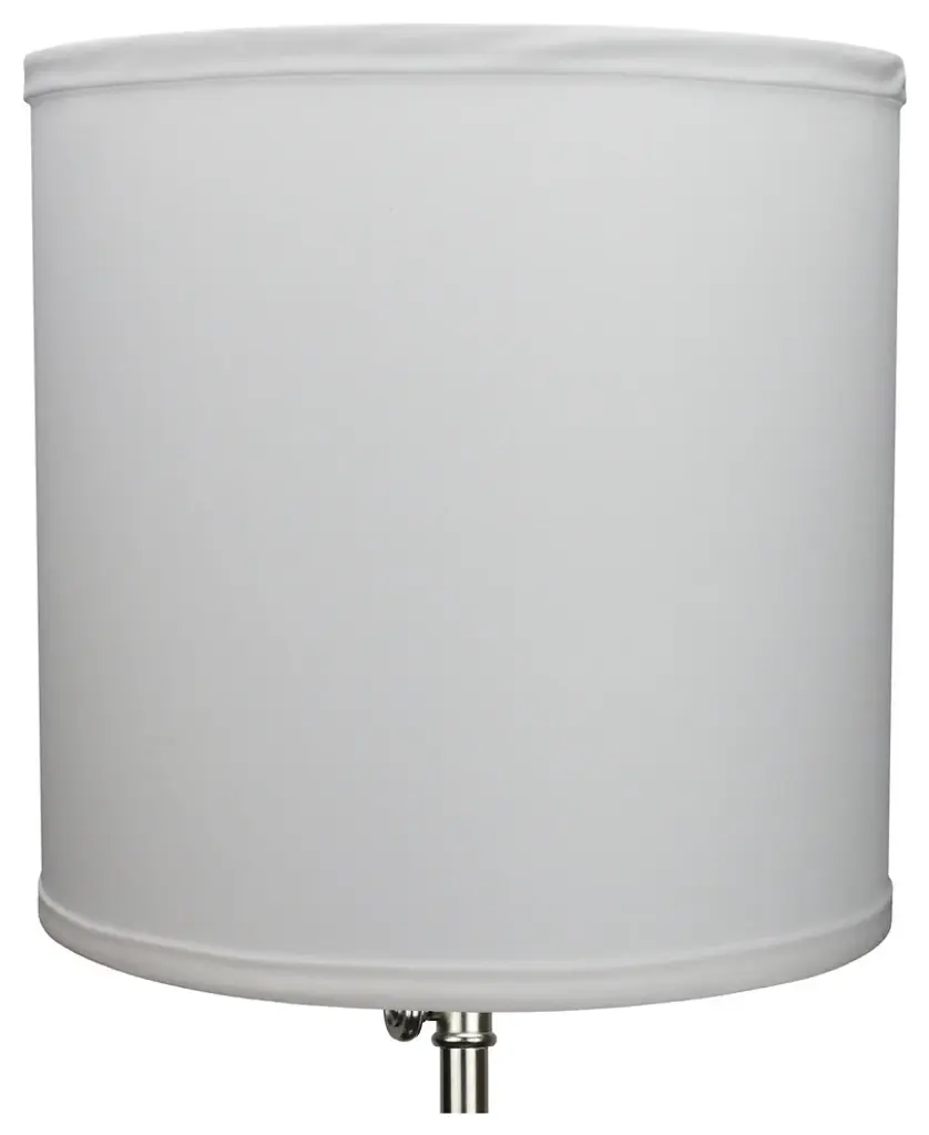This lamp shade is made with pride in the USA, and construction does not begin until you place your order. This shade measures 18" Top Diameter x 18" Bottom Diameter x 18" Height. This shade is equipped with a nickel finish washer fitter. This is the most common fitter type. It consists of a small washer with an inner diameter hole size of approximately 1/2". The washer generally rests on the top of a metal harp above the light bulb and is held in place by a screw-on finial. The outside of the lamp shade has a fabric covering. The inside is a white styrene (white plastic). The top and bottom of this item is adorned with a 1/2" band of single fold lampshade trim. The trim is the same color as the covering.