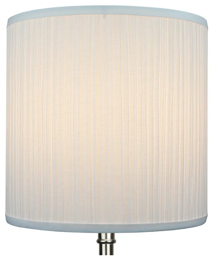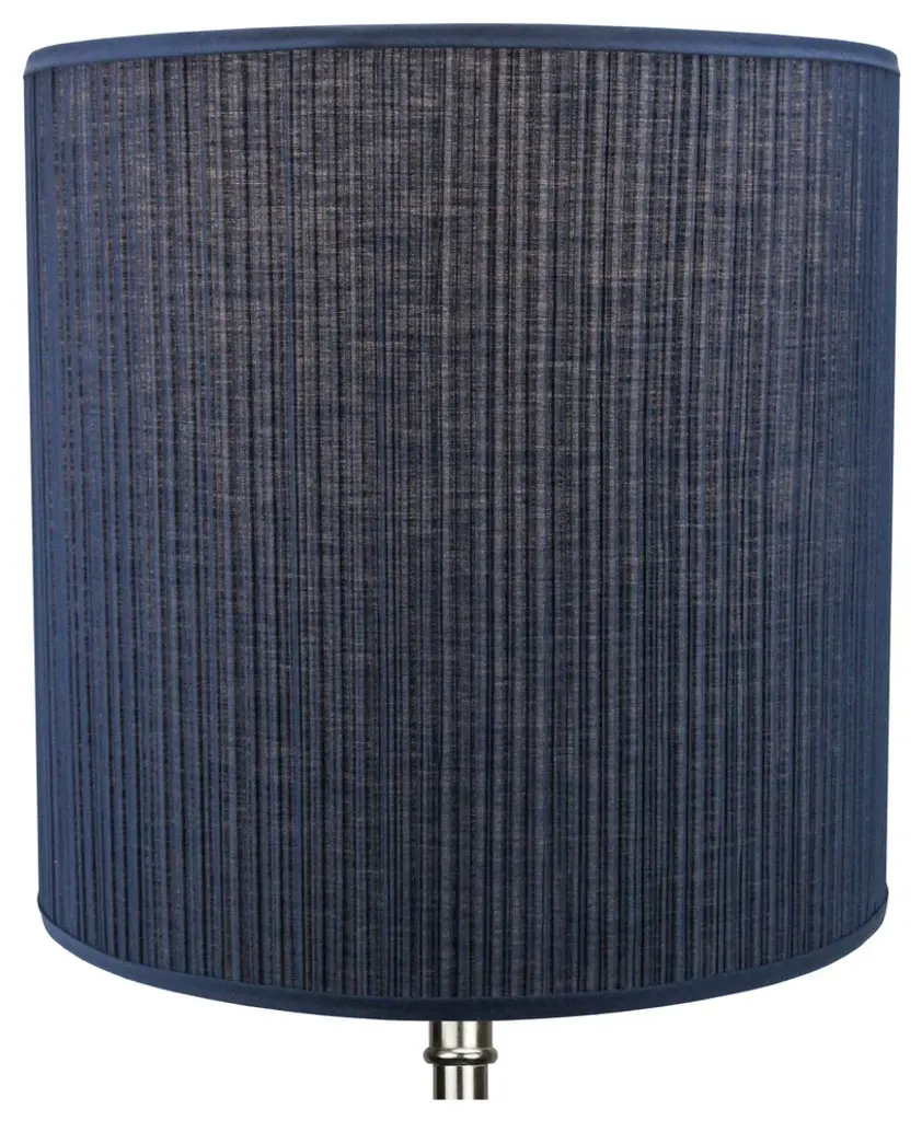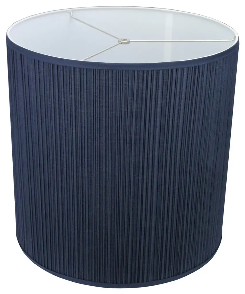This lamp shade is made with pride in the USA, and construction does not begin until you place your order. This shade measures 18" Top Diameter x 18" Bottom Diameter x 18" Height. This shade is equipped with a nickel finish washer fitter. This is the most common fitter type. It consists of a small washer with an inner diameter hole size of approximately 1/2". The washer generally rests on the top of a metal harp above the light bulb and is held in place by a screw-on finial. The outside of the lamp shade has a fabric covering. The inside is a white styrene (white plastic). The top and bottom of this item is adorned with a 1/2" band of single fold lampshade trim. The trim is the same color as the covering.