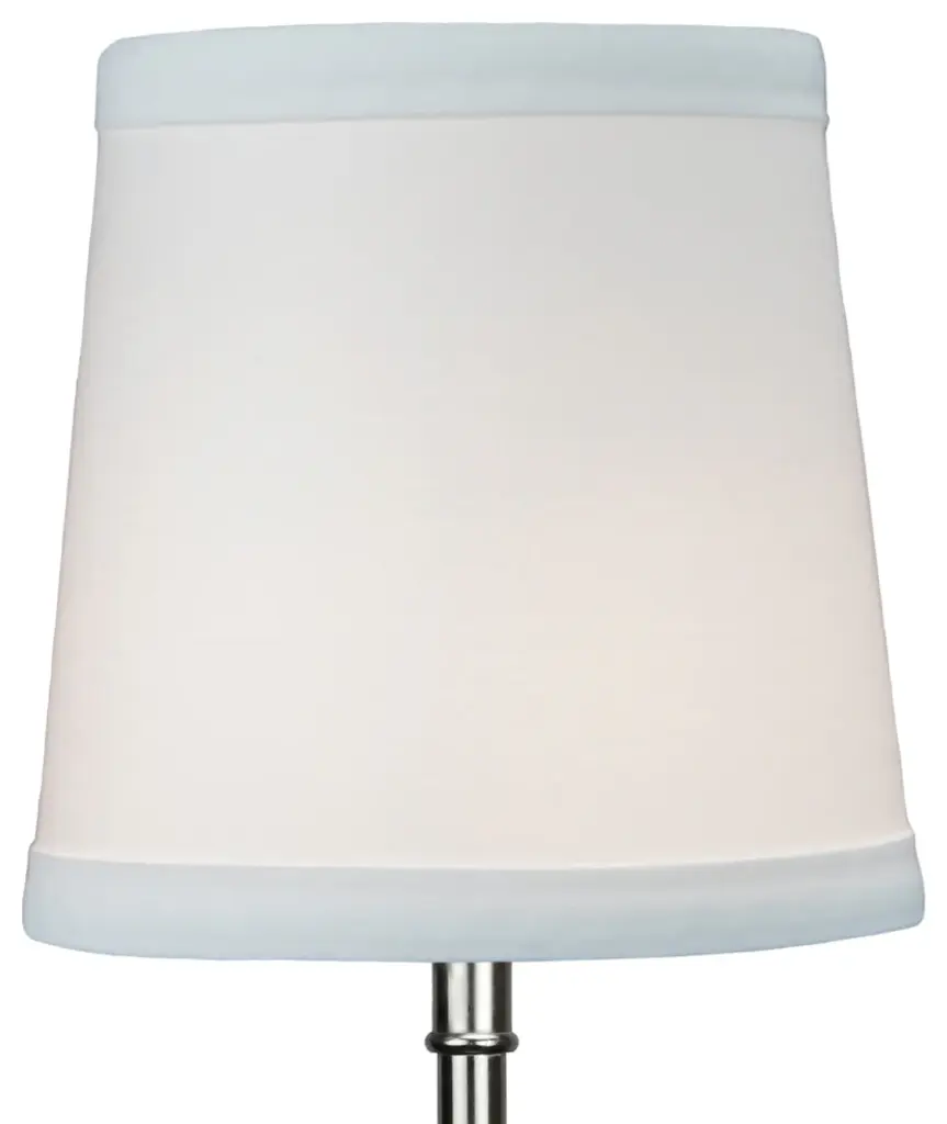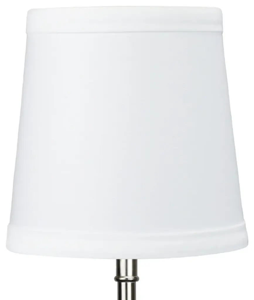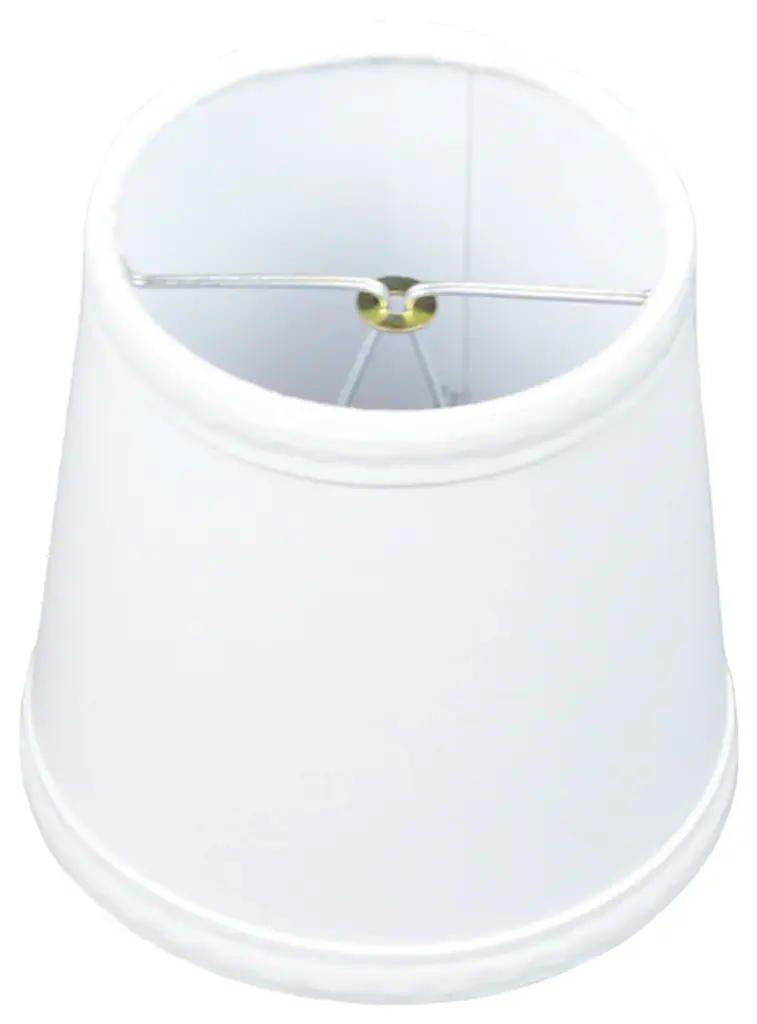This Fenchel Shades lamp shade has a top diameter of 4 inches, a bottom diameter of 5 inches, and a slant height of 5 inches. The vertical height of this shade is about 5 inches. The attachment type is a Flame clip with nickel finish Flame clips are most commonly used on standard flame-style bulbs often found on chandelier fixtures. This Product is proudly made in the USA with US materials.• Please note the COLOR of this shade is represented in the color swatch picture•