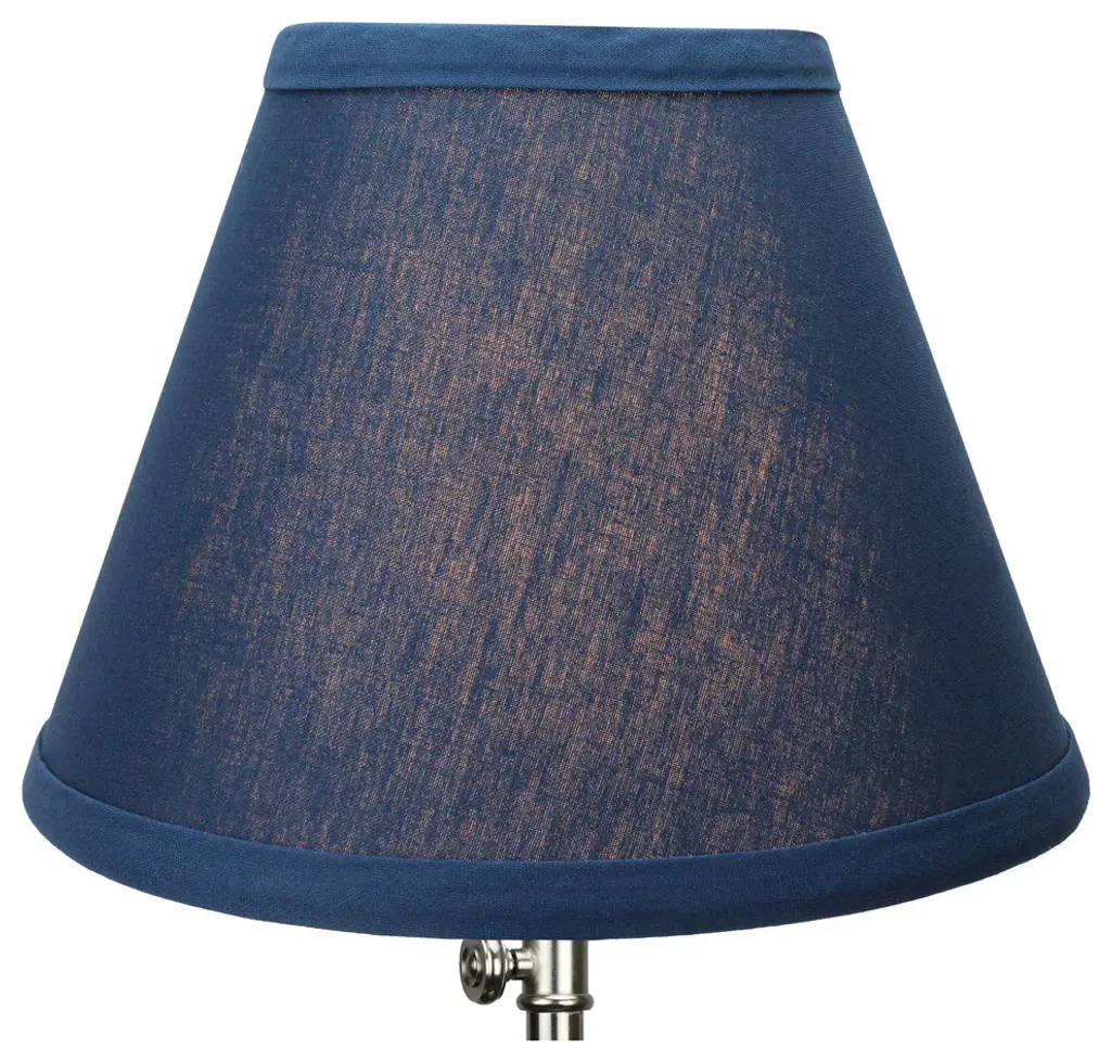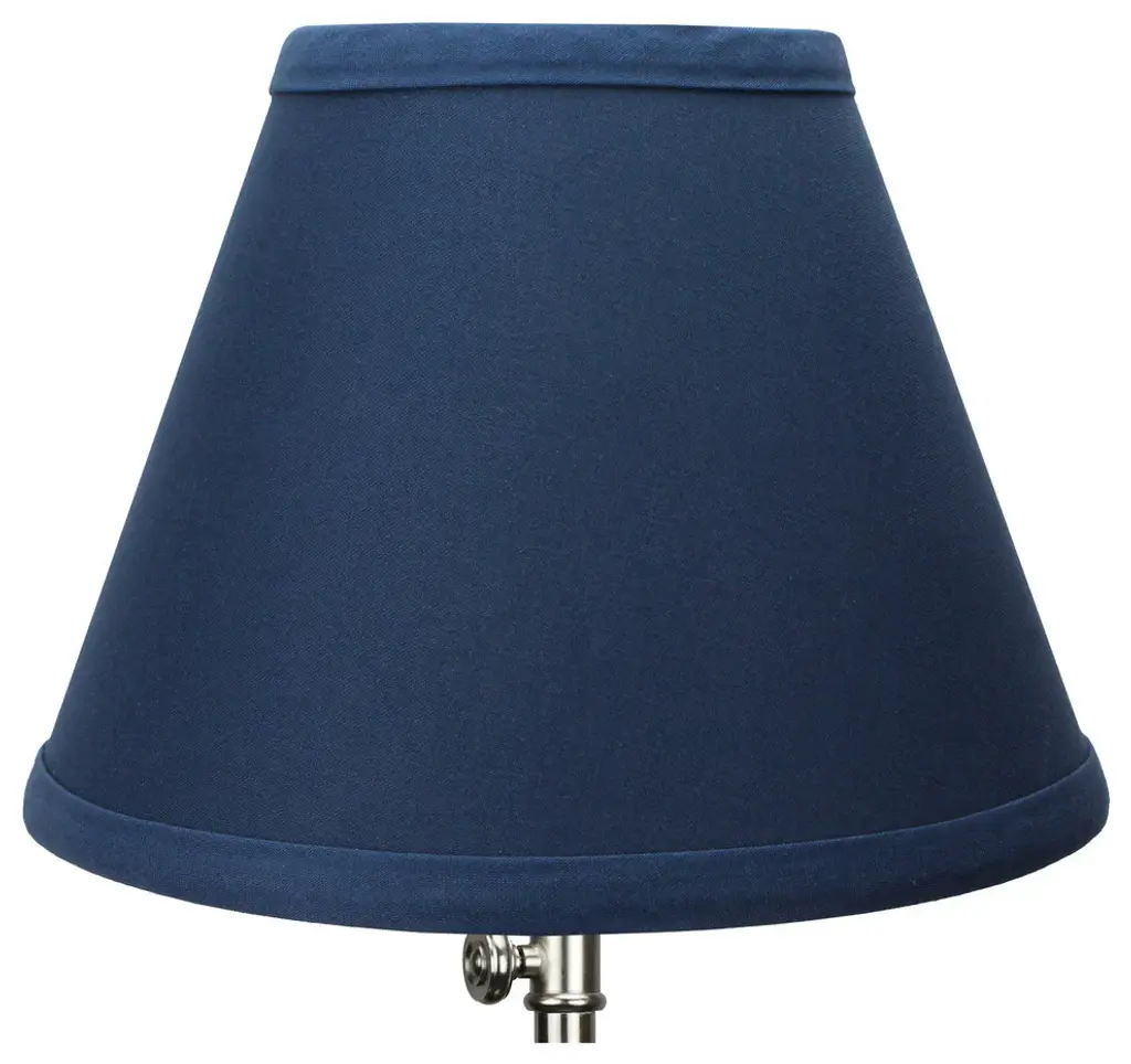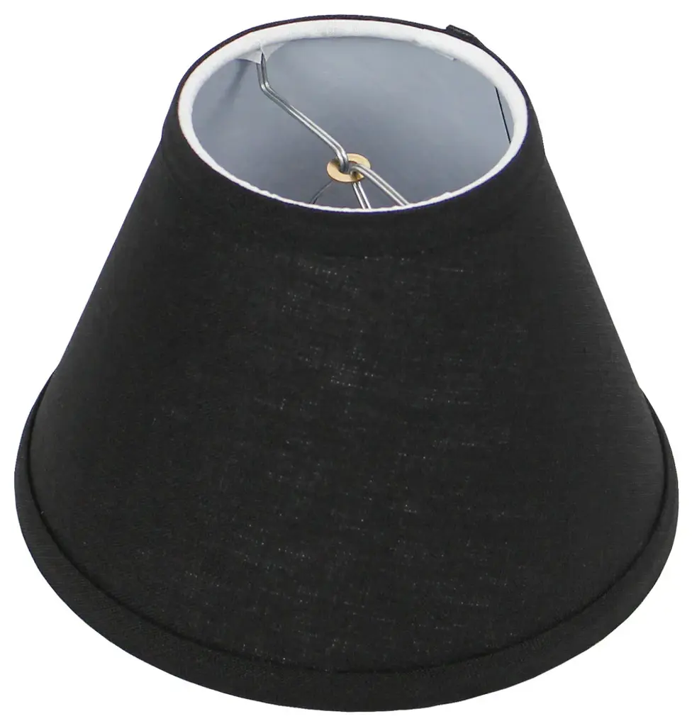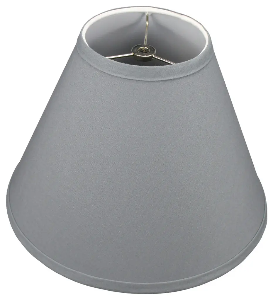 This lamp shade is made with pride in the USA, and construction does not begin until you place your order. This shade measures 4" Top Diameter x 8" Bottom Diameter x 6" Slant Height. The shade is equipped with a nickel bulb-clip attachment. This lampshade clips on to an existing lamp with a standard styled light bulb. The bulb-clip attachment has a standard 1/2" drop, or recess, from the top of the shade. The outside of the lamp shade has a fabric covering. The inside is a white styrene (white plastic). The top and bottom of this item is adorned with a 1/2" band of single fold lampshade trim. The trim is the same color as the covering.