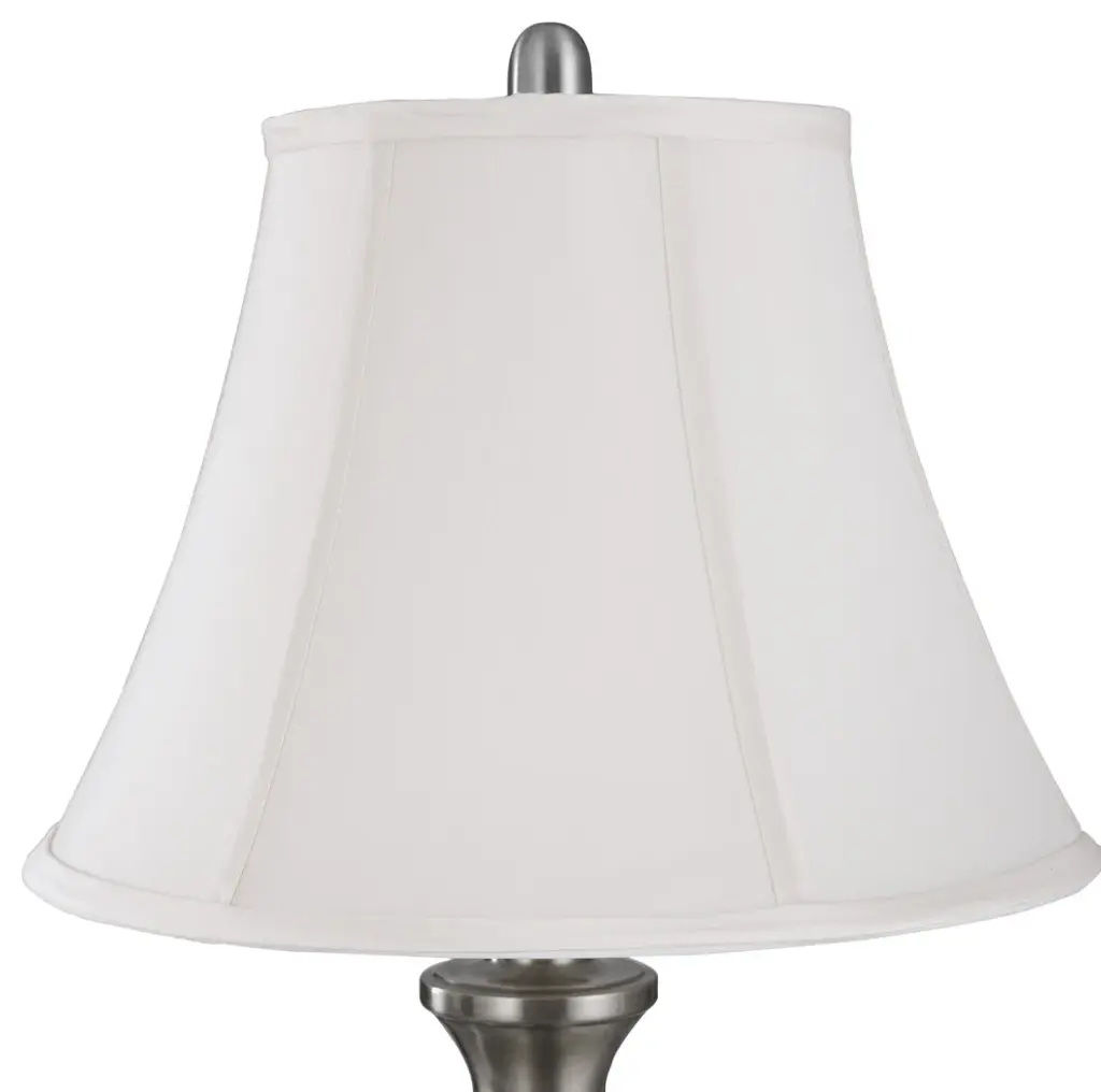 This Fenchel Shades lamp shade has a top diameter of 5 inches, a bottom diameter of 10 inches, and a slant height of 10 inches. The vertical height of this shade is about 9.75 inches. This attachment is called a washer attachment and is nickel in color. It is also known as a spider attachment. If your lamp has a harp, then you will generally need a washer attachment. The hole size (inner-dimension) of a washer attachment measures slightly under 1/2 inch. The drop on this particular attachment is 1/2 inch. That means, it recesses about 1/2 inch below the top of the lamp shade. This Product is proudly made in the USA with US materials.