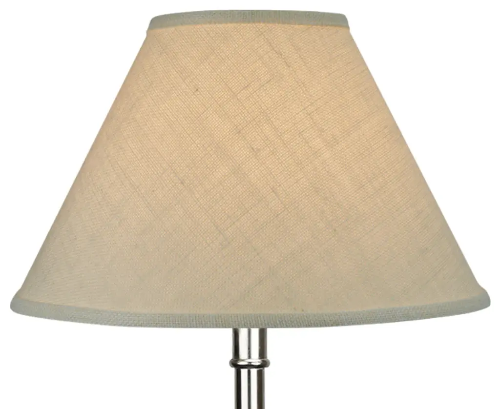 This Fenchel Shades lamp shade has a top diameter of 5 inches, a bottom diameter of 15 inches, and a slant height of 10 inches. The vertical height of this shade is about 8.75 inches. This attachment is called a washer attachment and is brass in color. It is also known as a spider attachment. If your lamp has a harp, then you will generally need a washer attachment. The hole size (inner-dimension) of a washer attachment measures slightly under 1/2 inch. This Product is proudly made in the USA with US materials.• First photo is to reference the style of shade, Second photo is the COLOR of the shade•